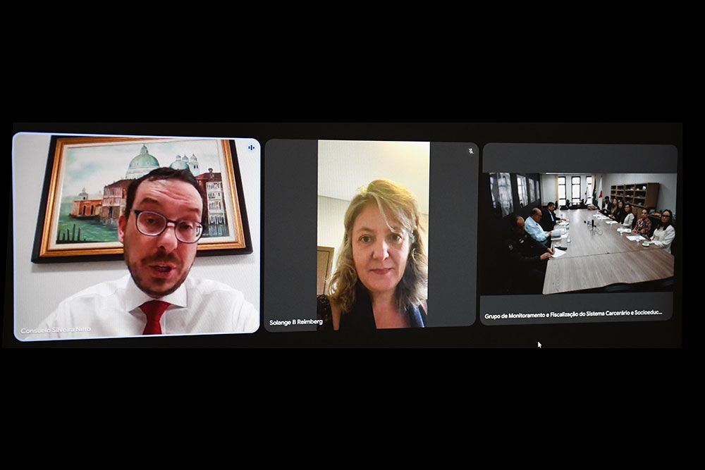 Do TJMG, participaram da reunião a coordenadora-geral do Programa de Atenção Integral ao Paciente Judiciário Portador de Sofrimento Mental (PAI-PJ), desembargadora Márcia Maria Milanez; a coordenadora do eixo prisional do GMF, juíza Solange de Borba Reimberg (de forma online); o coordenador executivo do Segmento Apac, juiz Consuelo Silveira Neto (online); as assessoras do GMF/TJMG Ana Clara Saraiva e Ana Beatriz Magalhães; o assistente executivo do GMF/TJMG Douglas Rodrigo Rosa; o diretor institucional da PPP/GPA (Parceria Público-Privada/Gestores Prisionais Associados), Marcelo Costa e o diretor da PPP, Leandro Lino dos Santos Landim.