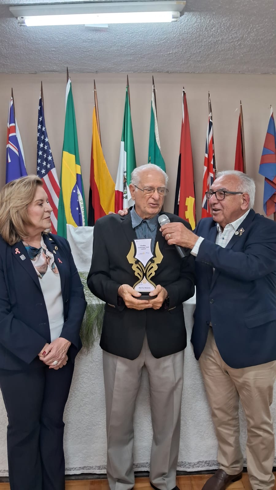 Em reconhecimento à trajetória exemplar e à dedicação à medicina e ao ideal rotário, o clube prestou homenagem ao Dr. Geraldo de Filippo, decano do Rotary e renomado oftalmologista. Fundador do Instituto dos Olhos de Filippo, referência em Minas Gerais, Dr. Geraldo recebeu o Troféu Mérito Rotário Governador Fauzi Haddad, pelos 60 anos de atuação humanitária e profissional.