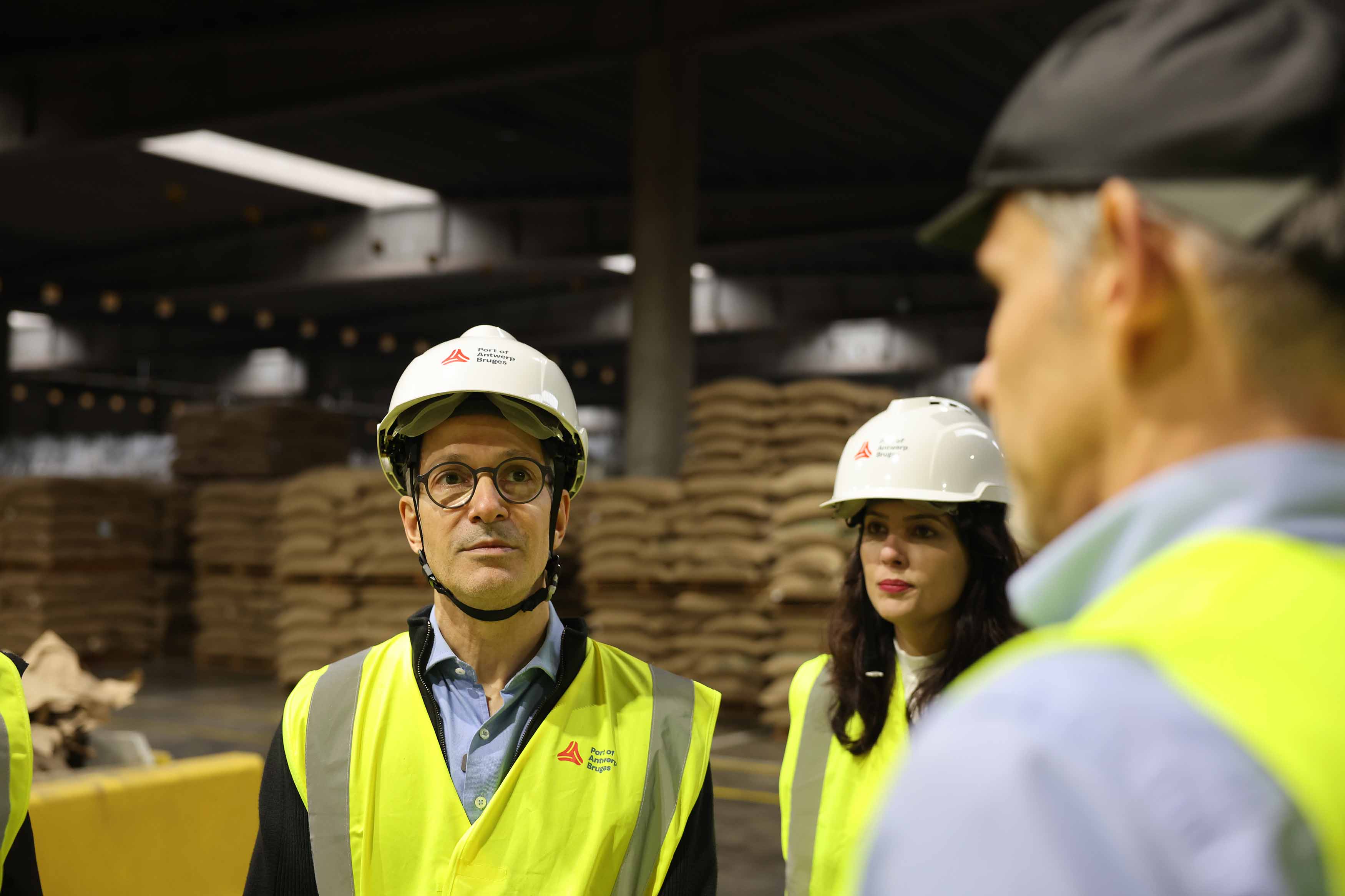 A agenda incluiu uma apresentação sobre as capacidades operacionais do porto, seguida de visita técnica a um armazém especializado em café da empresa Molenbergnatie, referência europeia em serviços logísticos e de valor agregado para exportadores e importadores.