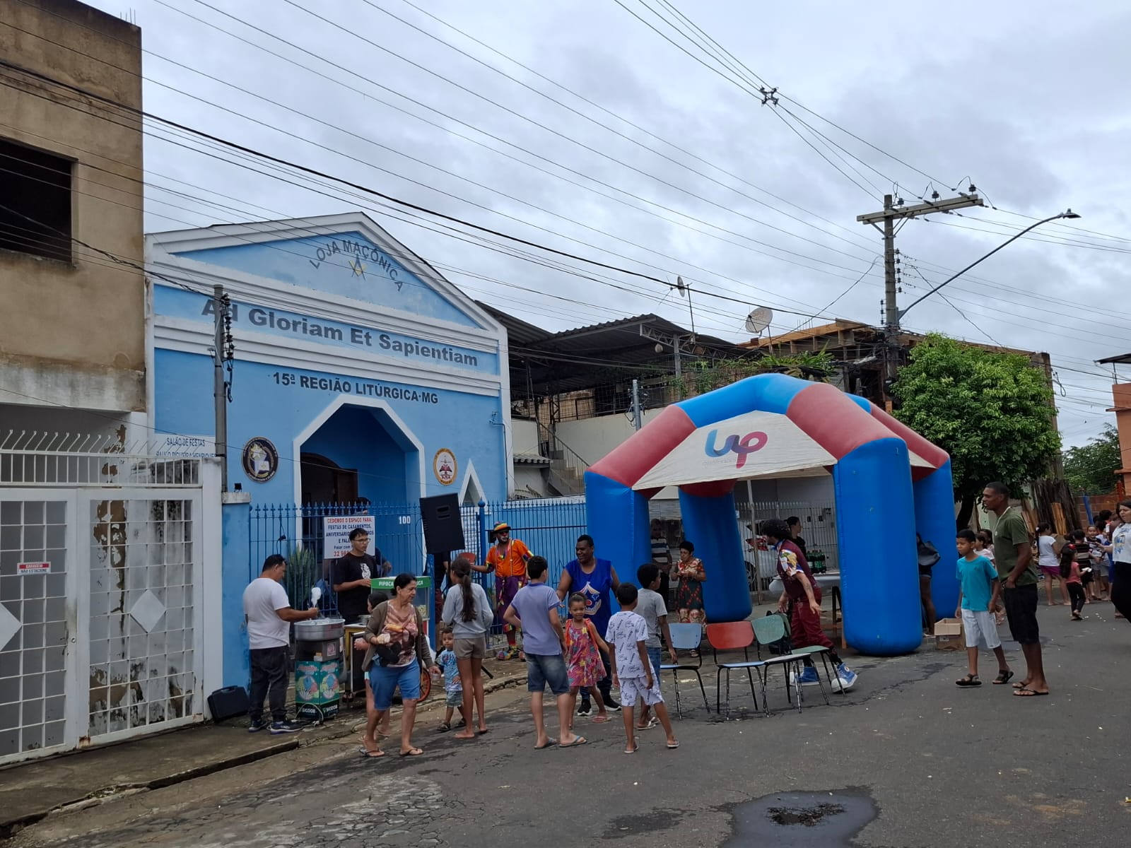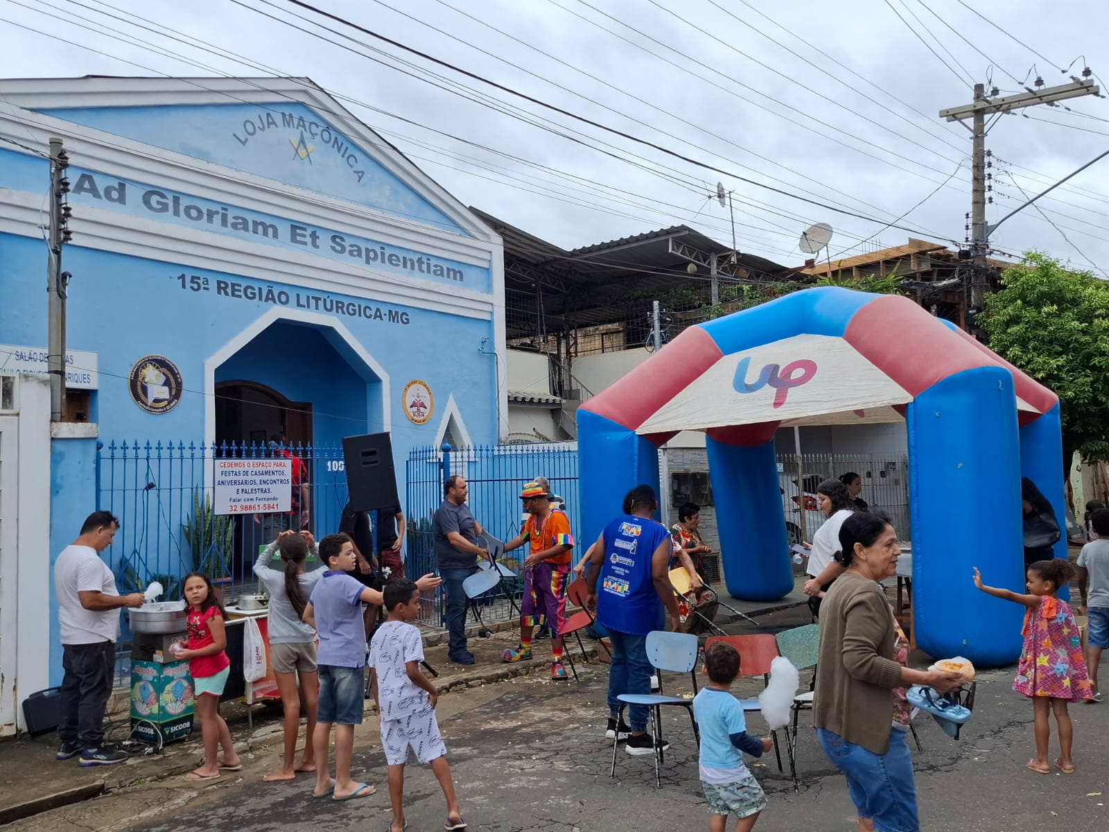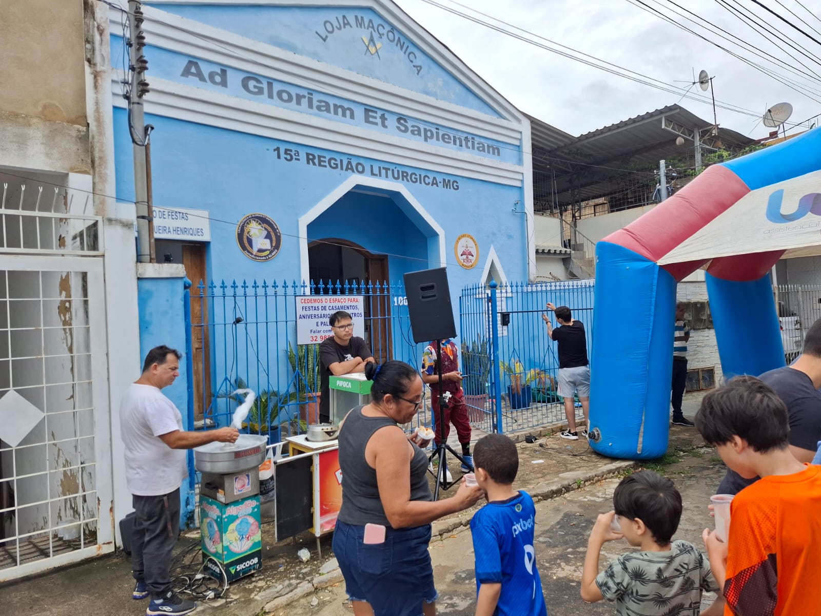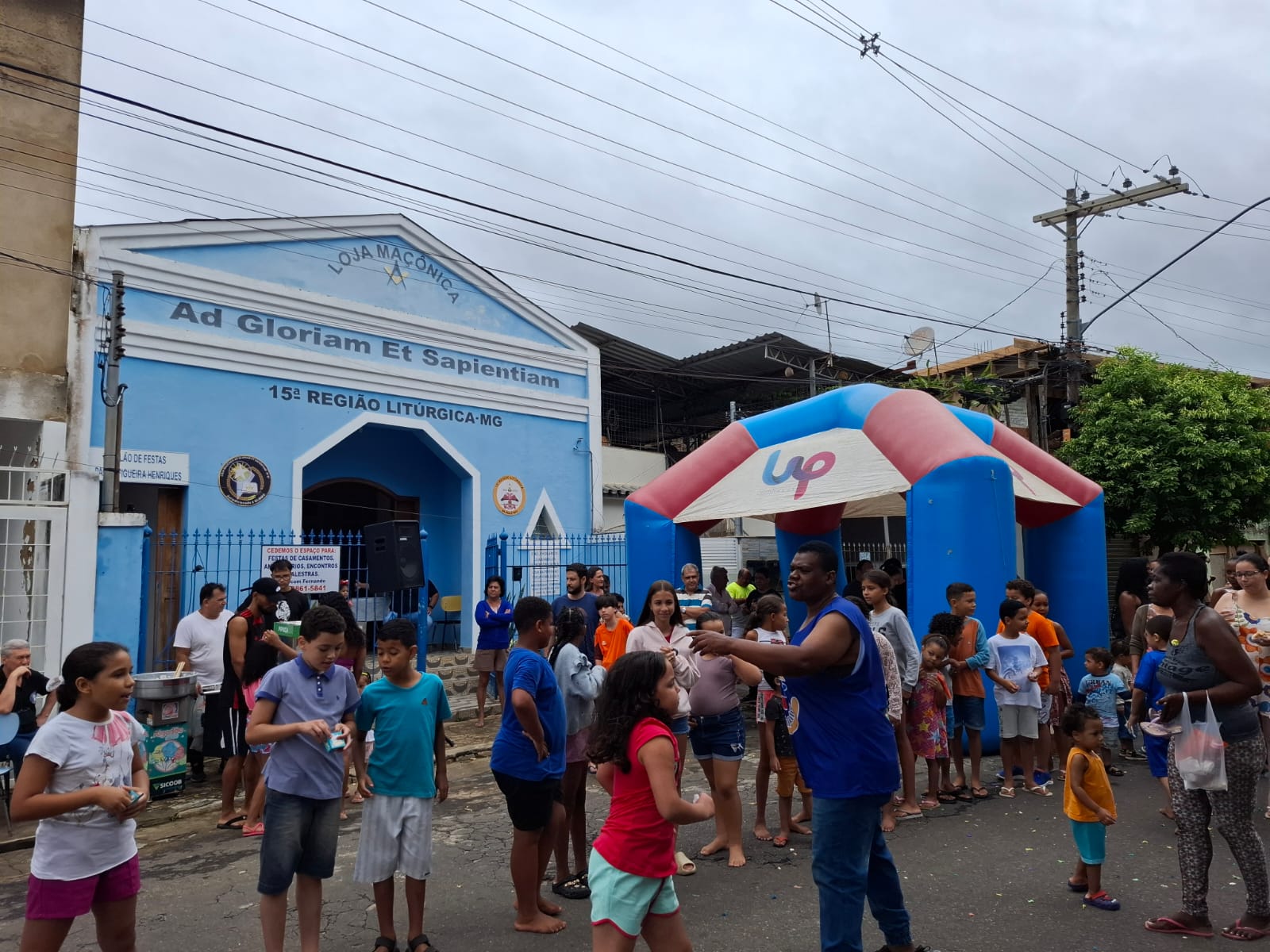 Este domingo, 19 de outubro, foi de muita alegria e solidariedade no Bairro São Cristóvão, com a realização da Festa das Crianças promovida pela Loja Maçônica Ad Gloriam Et Sapientiam Nº 097, da Grande Loja Maçônica de Minas Gerais (GLMMG). O evento, que aconteceu na Rua Portugal, em frente ao número 110, reuniu dezenas de crianças e adolescentes para uma manhã de diversão, carinho e confraternização.