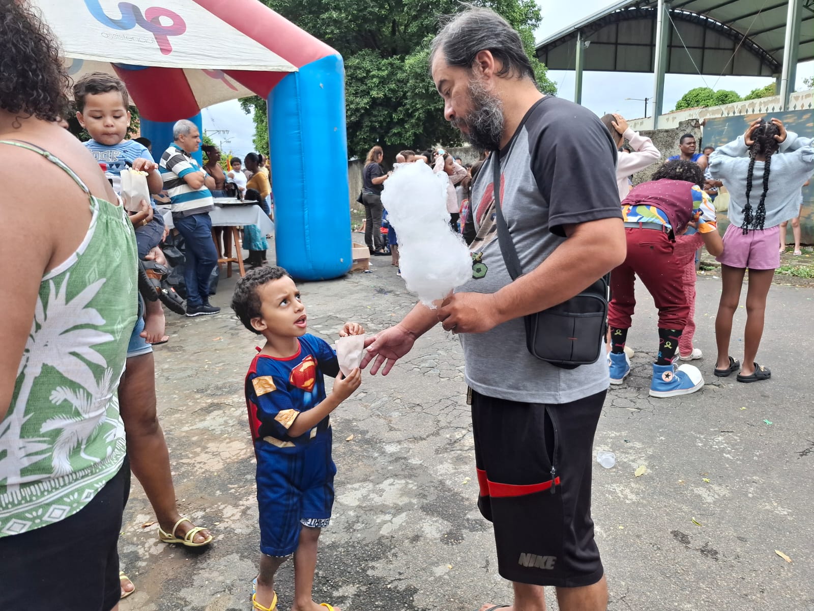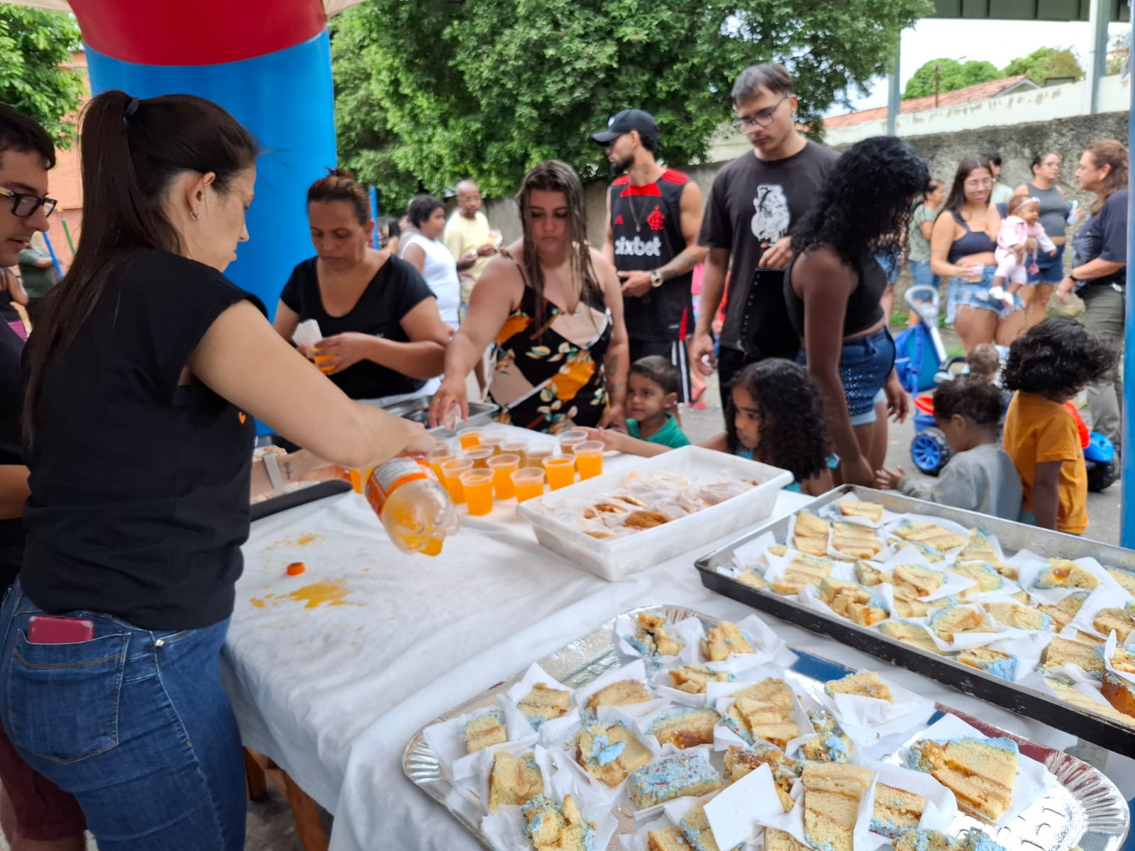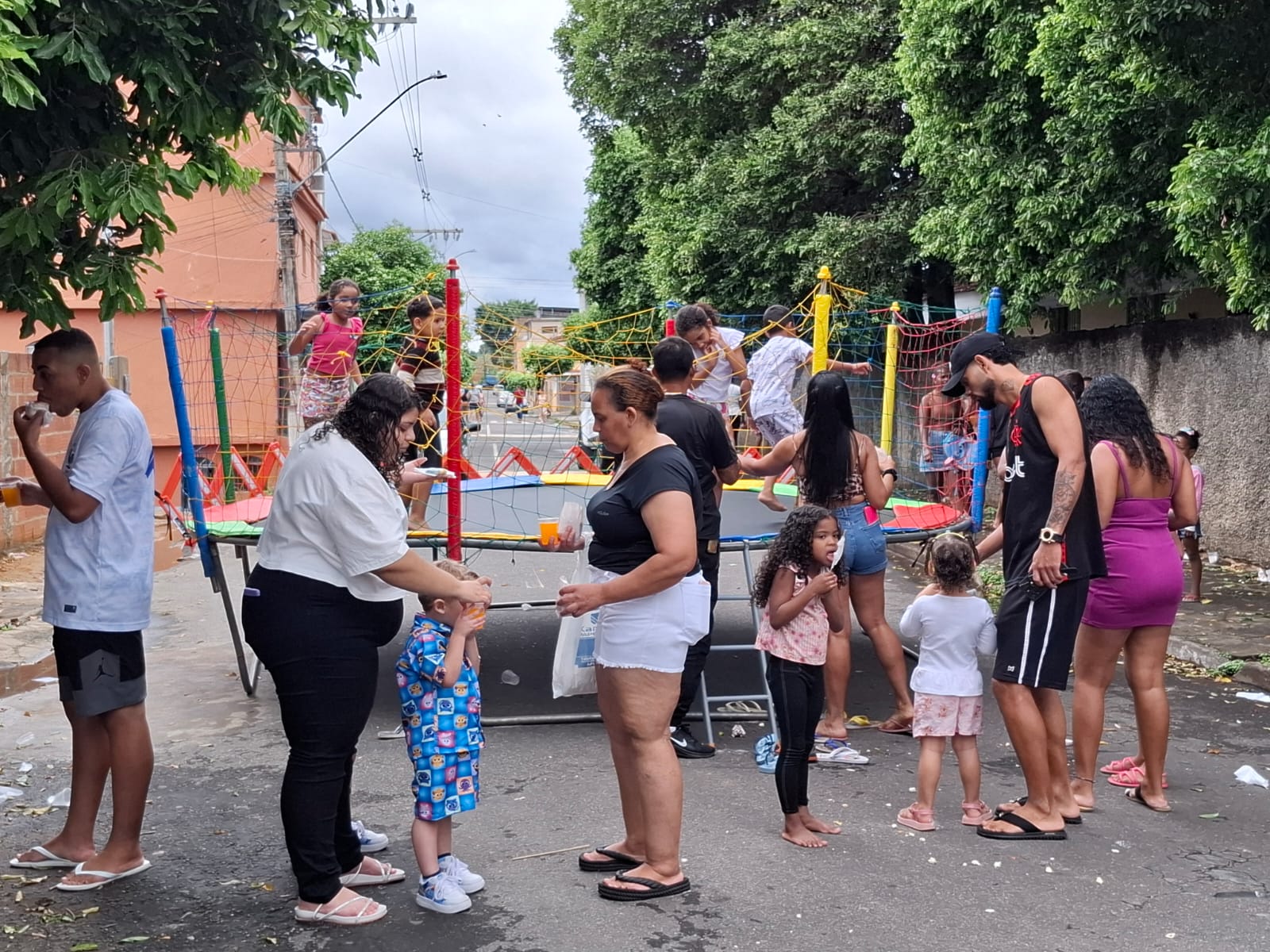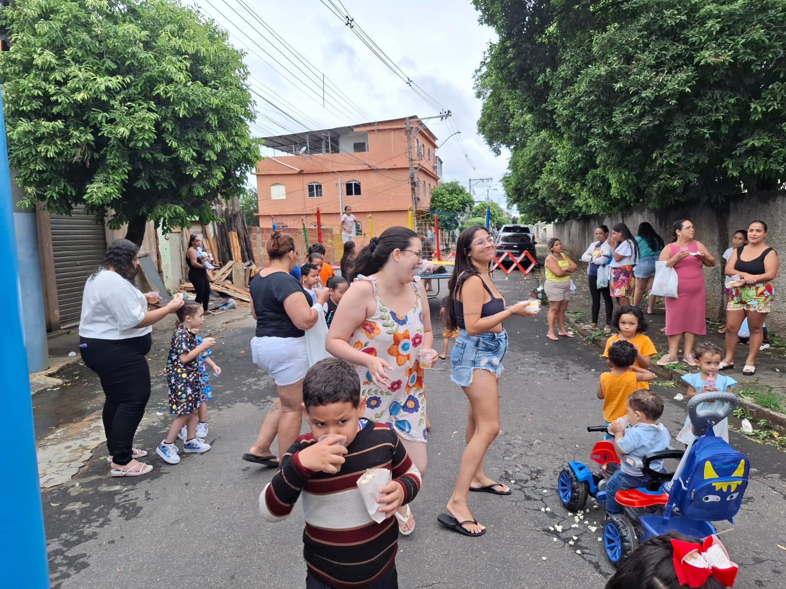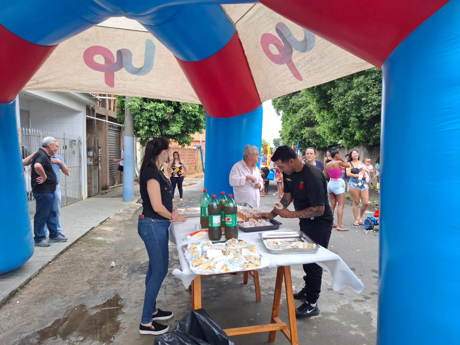 A celebração contou com o apoio do Demuttran, que realizou o fechamento das vias laterais, garantindo a segurança de todos os participantes, e com a parceria da Fundarte, que disponibilizou um pula-pula, ampliando as opções de lazer para a garotada.