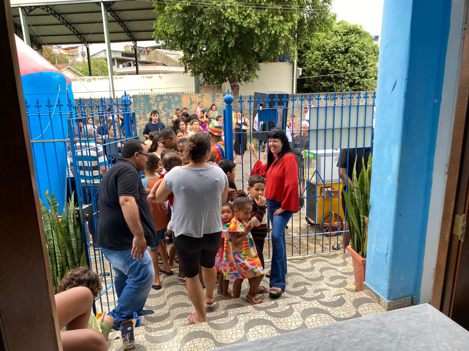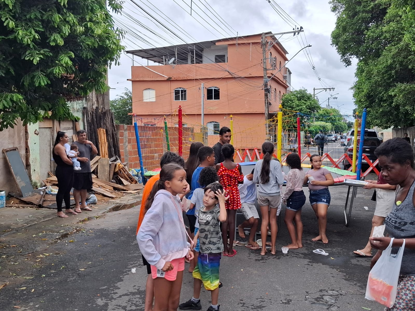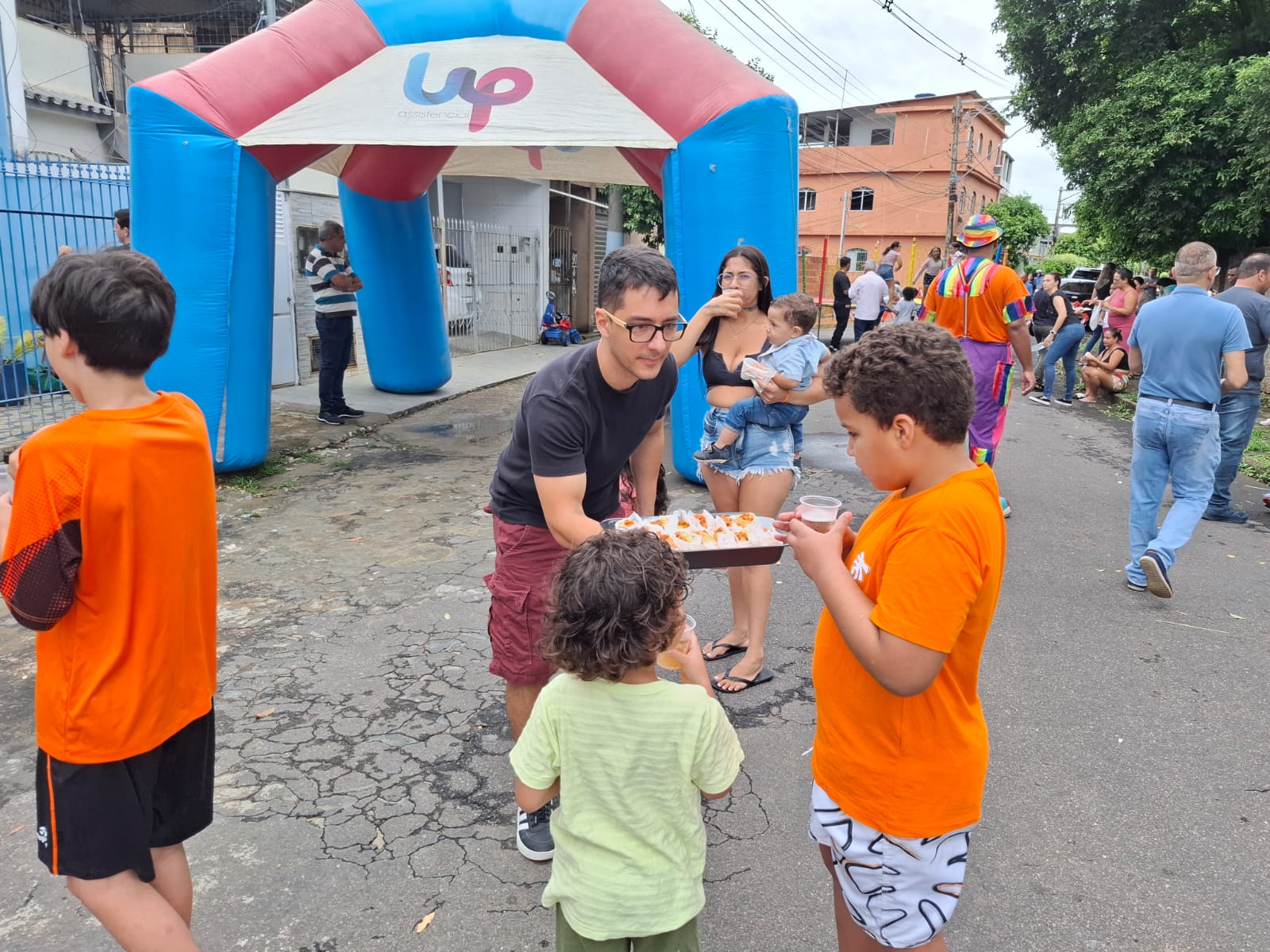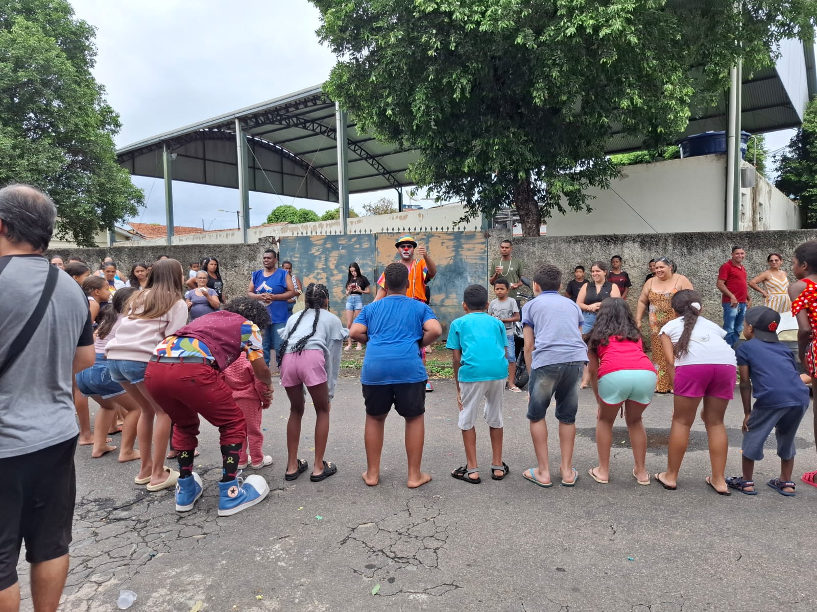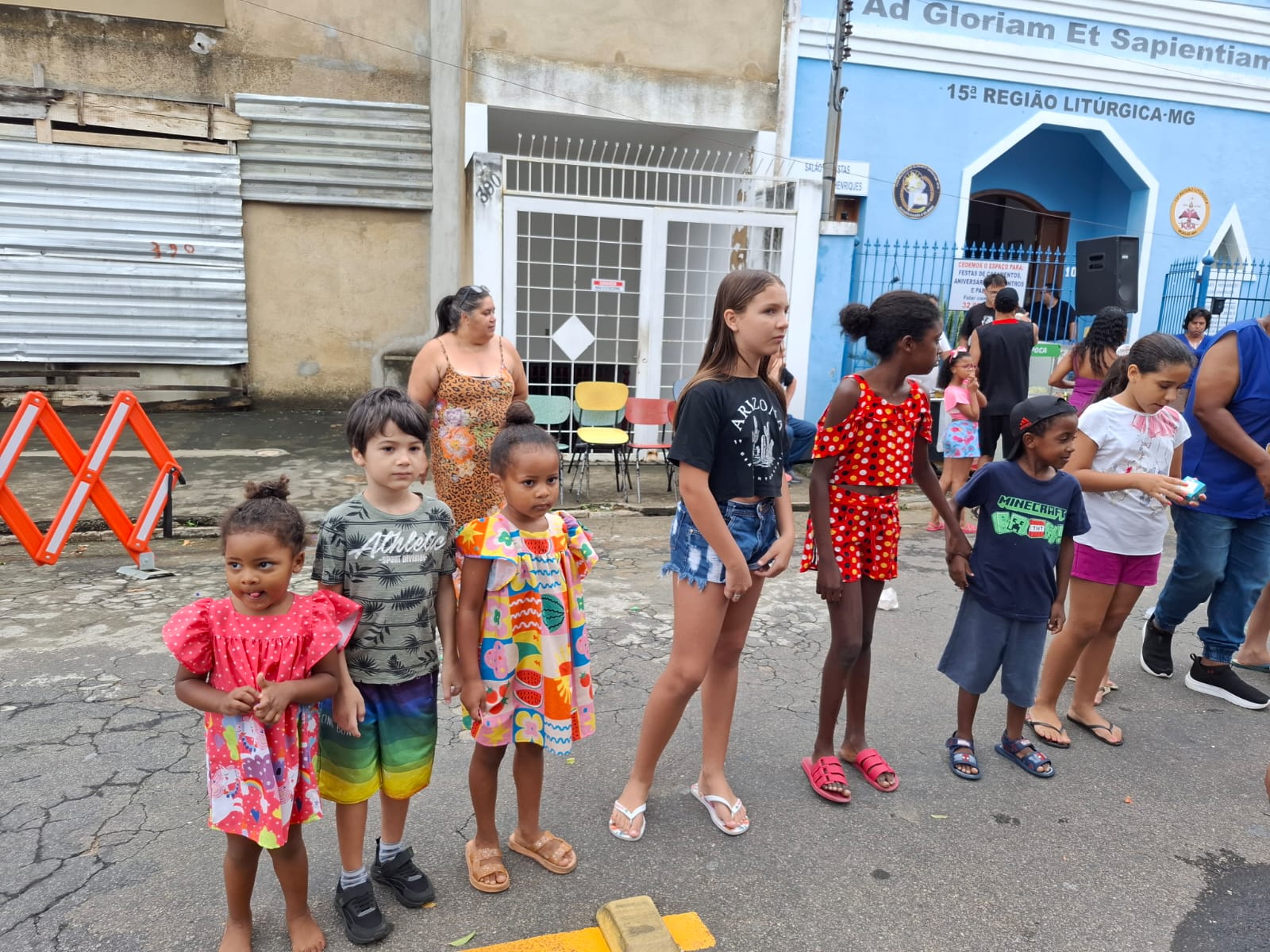 A celebração contou com o apoio do Demuttran, que realizou o fechamento das vias laterais, garantindo a segurança de todos os participantes, e com a parceria da Fundarte, que disponibilizou um pula-pula, ampliando as opções de lazer para a garotada.