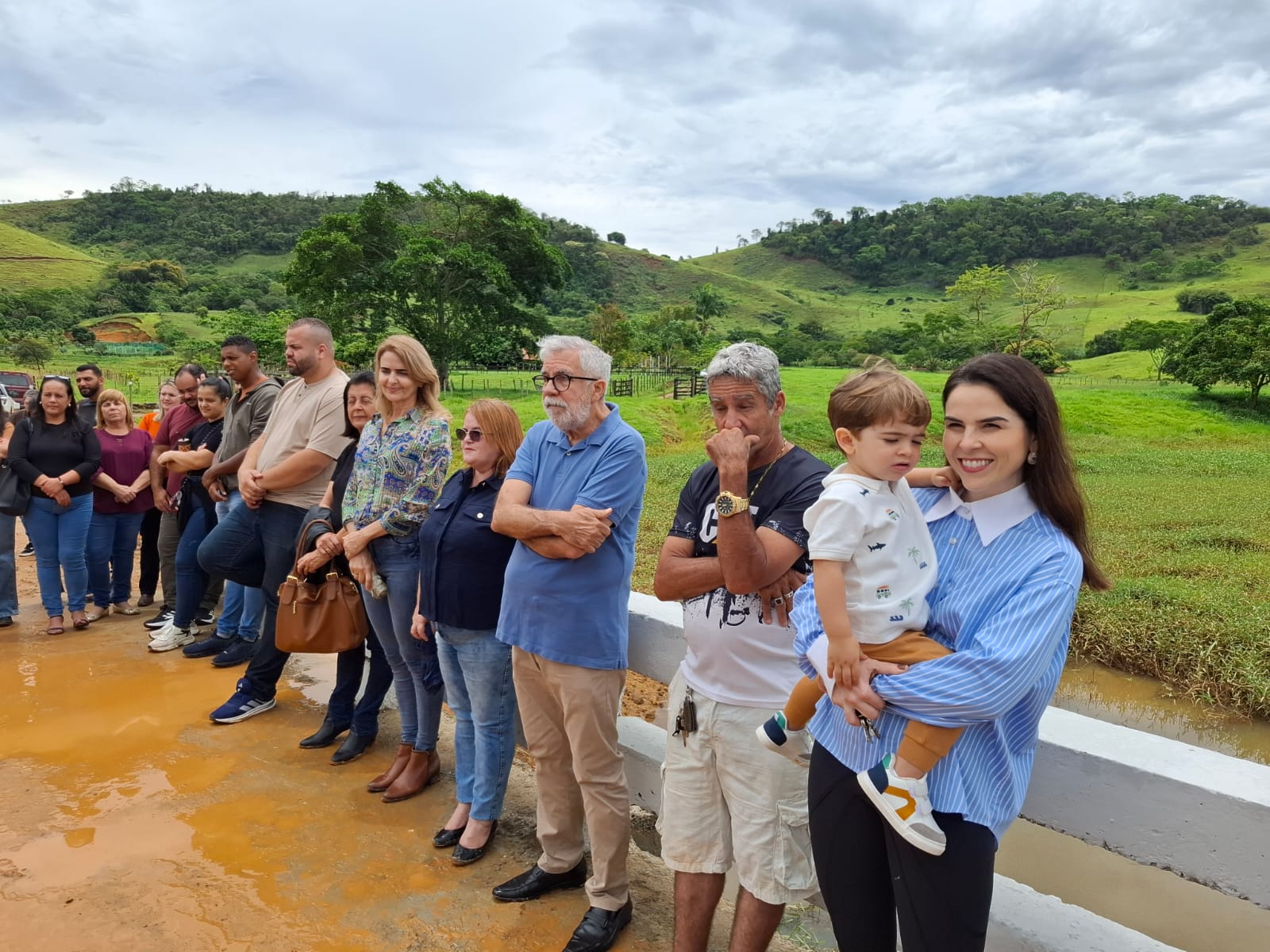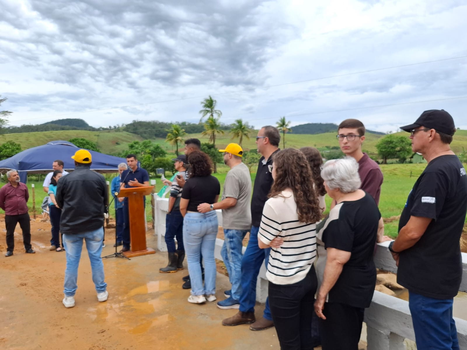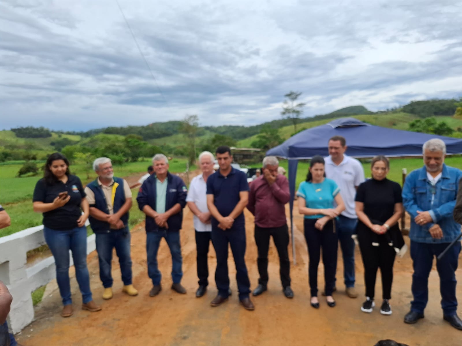 A solenidade também contou com a presença de Marilene Mescolin, representando os familiares de Antônio Mescolin, e de Jair Fernandes (Fernando), representante da comunidade de São João do Glória, que expressou a alegria e a gratidão dos moradores pela entrega da obra — uma antiga rei-vindicação da população local.