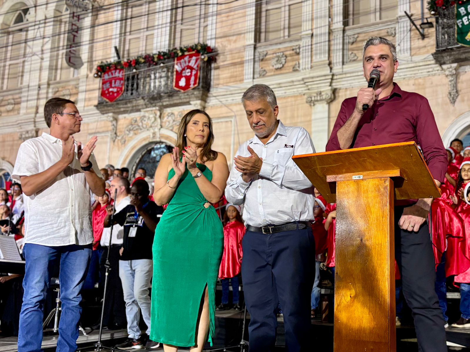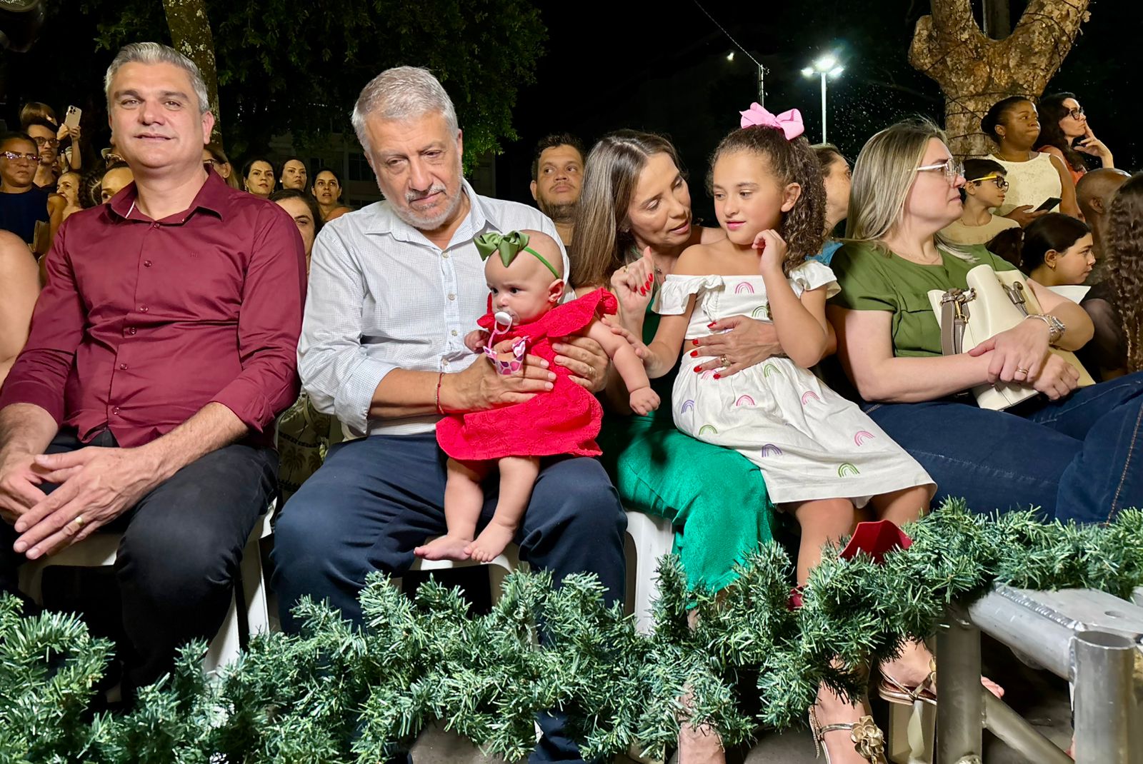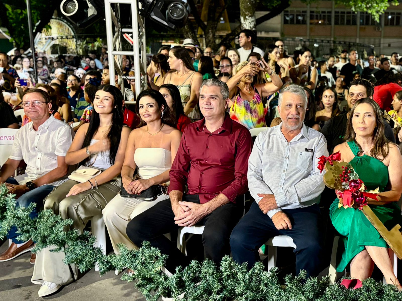 A solenidade contou com a presença do prefeito Dr. Marcos Guarino de Oliveira, acompanhado da primeira-dama e secretária de Direitos Humanos e Cidadania, Tatiana Rangel Viana. Estiveram presentes também o diretor-geral da Fundarte, Sandro Areal Carrizo; o presidente da CDL ACE Mais de Muriaé, Eduardo Monteiro; além de secretários municipais, servidores, empreendedores e instituições parceiras que contribuem para a construção de uma programação natalina forte, inclusiva e acessível para toda a população.
