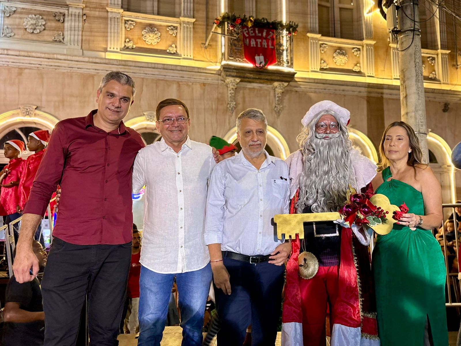 Um dos momentos mais emblemáticos da noite foi a chegada do Papai Noel, que recebeu das mãos do prefeito a chave simbólica da cidade, oficializando o início das festividades natalinas. Em seguida, o público participou da contagem regressiva para o acender das luzes, que transformou a Praça João Pinheiro em um cenário iluminado e repleto de emoção, marcando o início das atividades que irão movimentar o comércio e fortalecer o espírito comunitário.