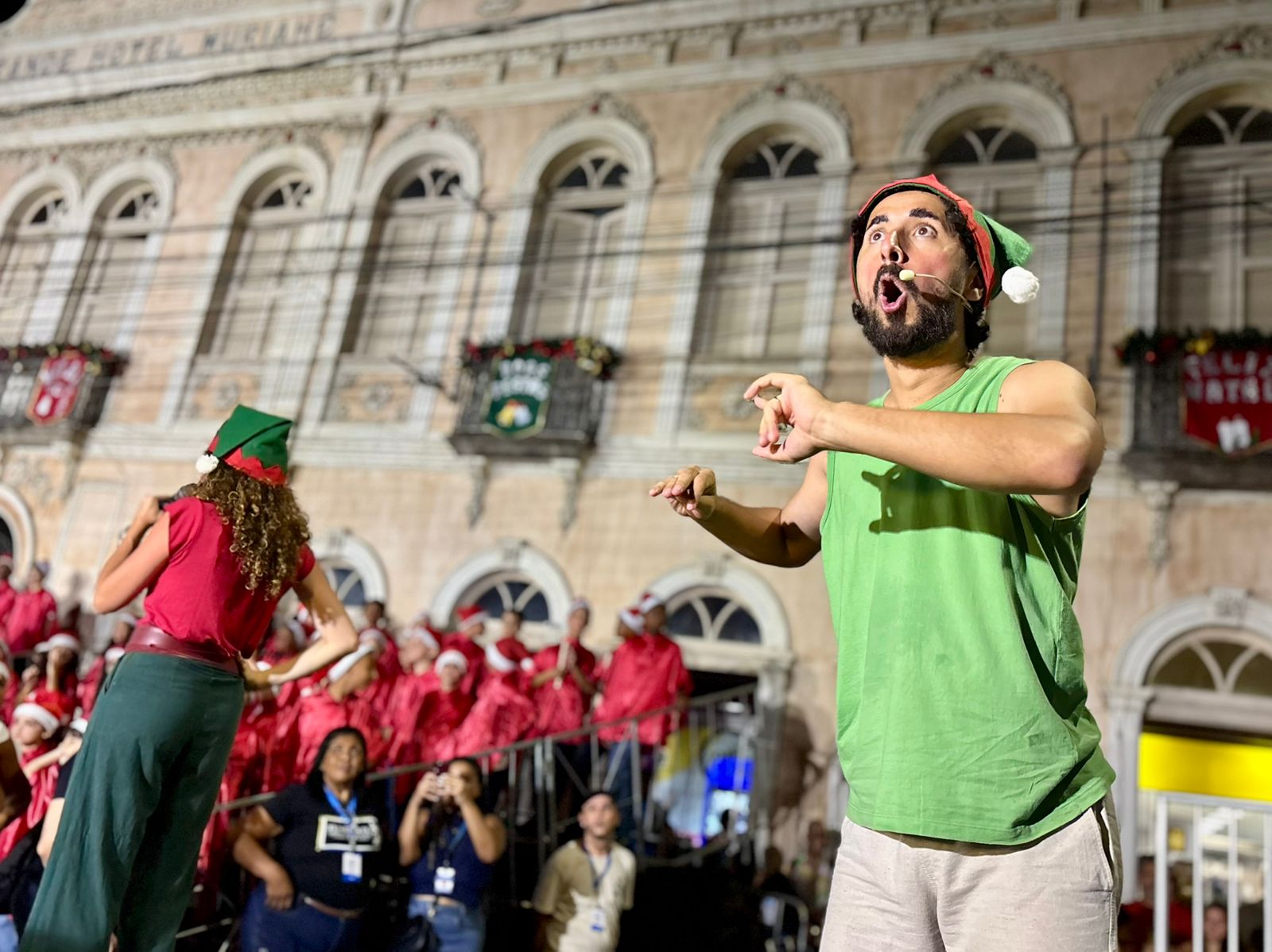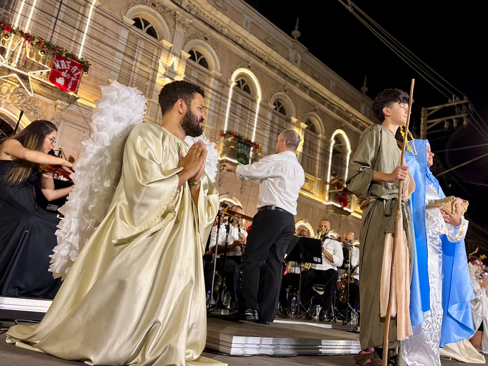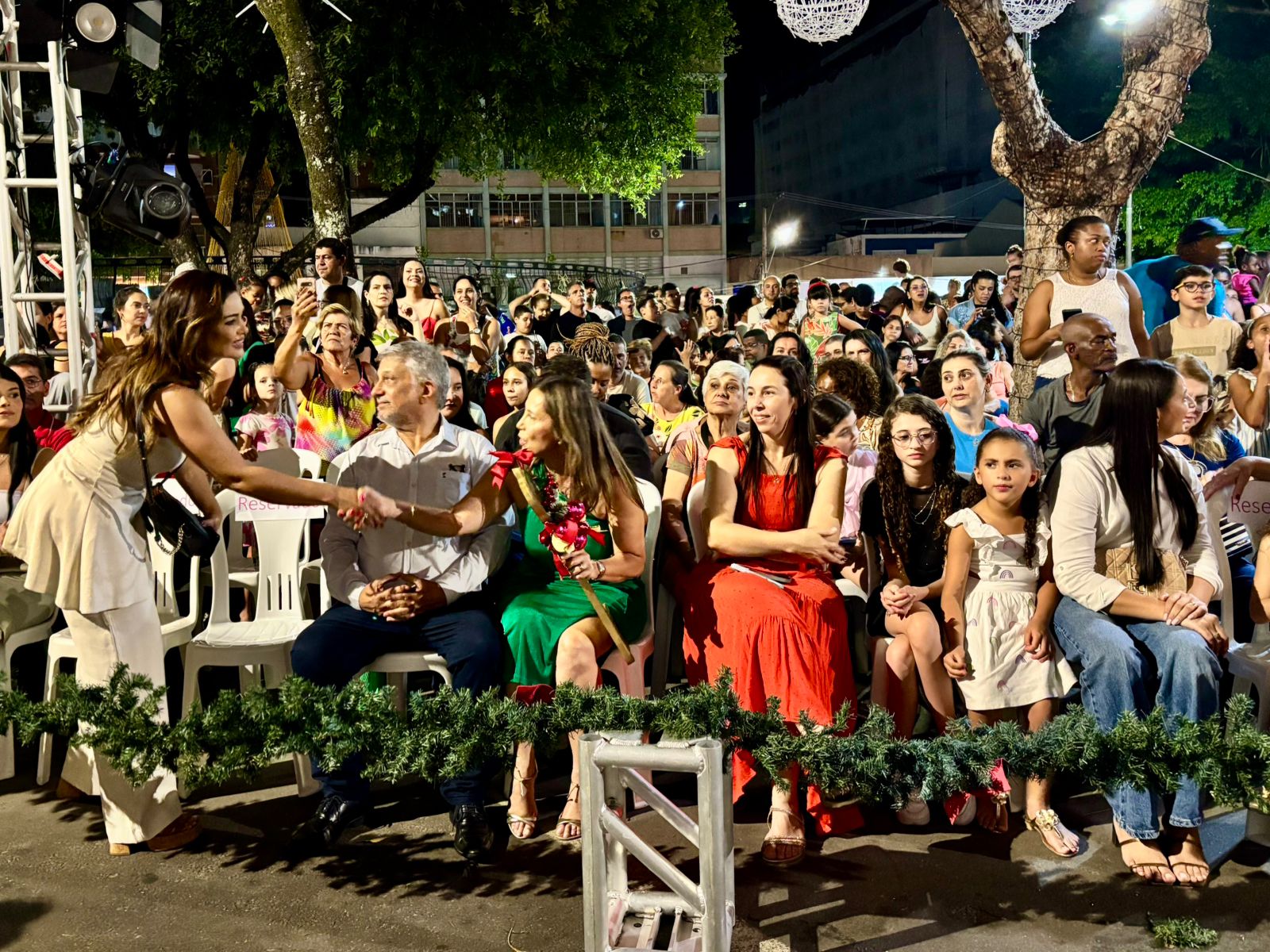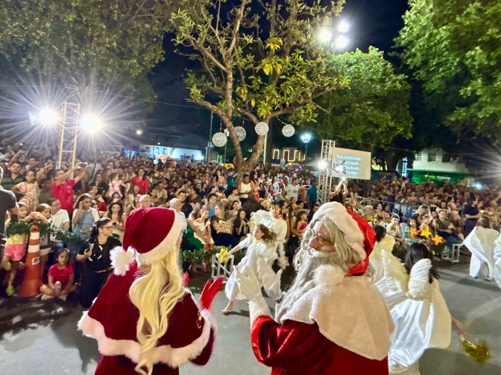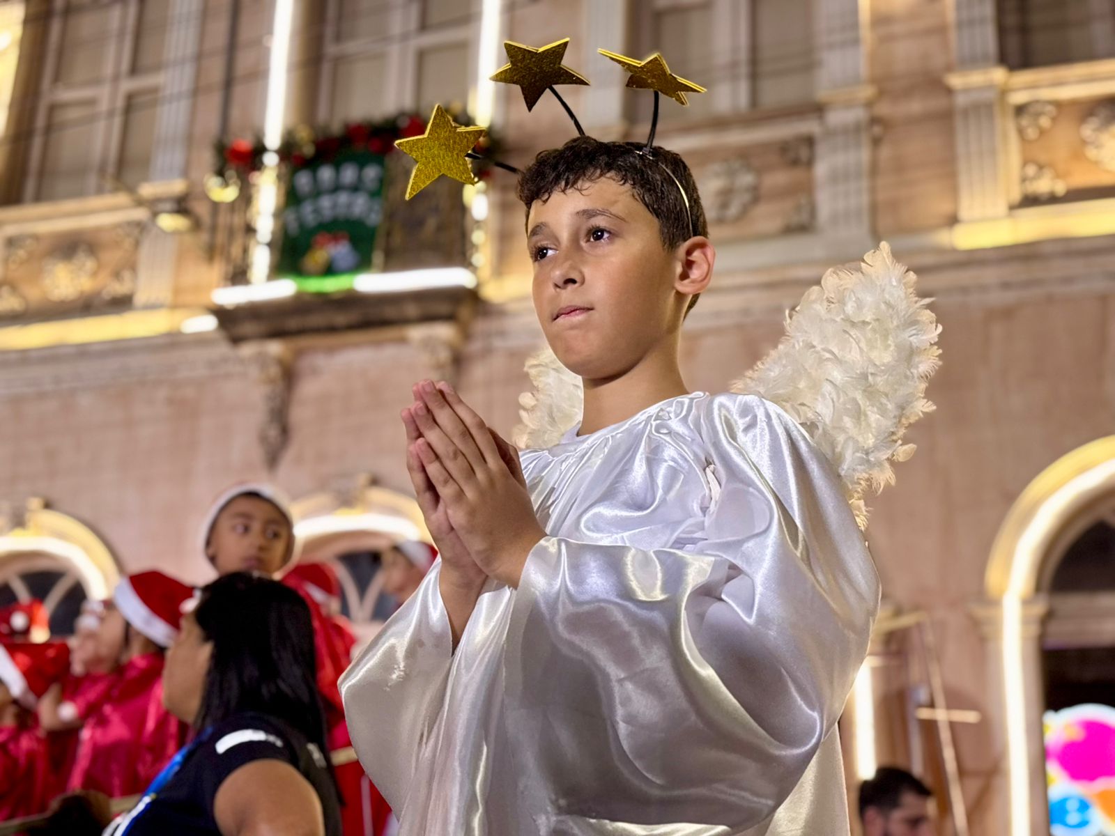 A programação artística iniciou com apresentações da Sociedade Musical União dos Artistas, do Coral Cantare e de um grande coral formado por alunos da Escola Municipal de Música Leonel Vargas, sob regência dos maestros Gidson Cerqueira e Renata Roriz. Mais de 300 crianças, de três escolas de arte, música, dança e teatro, participaram do espetáculo, interpretando clássicos natalinos e emocionando o público presente.