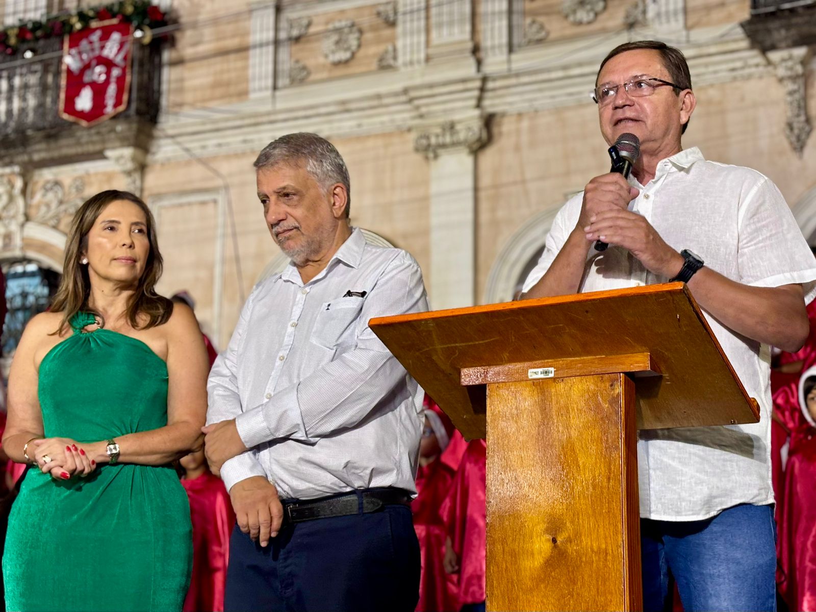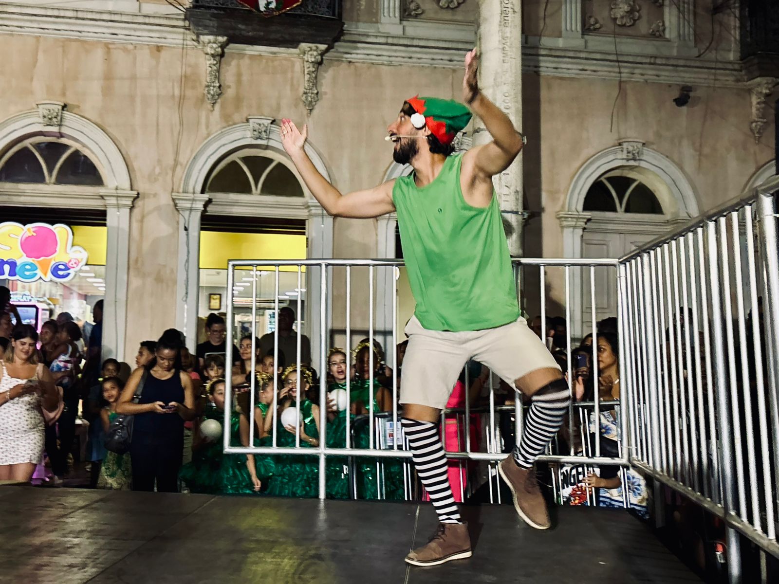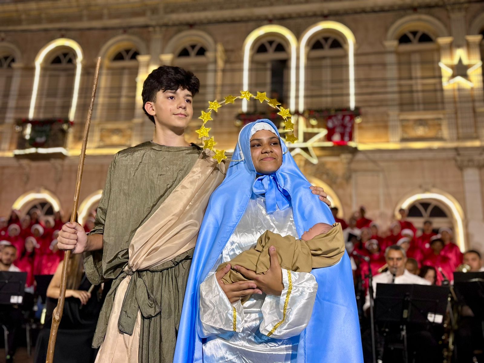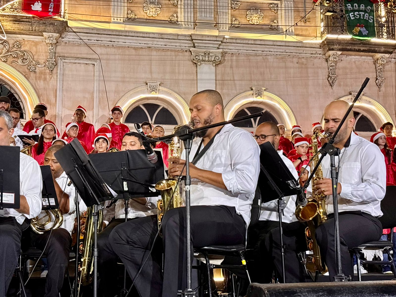 A programação artística iniciou com apresentações da Sociedade Musical União dos Artistas, do Coral Cantare e de um grande coral formado por alunos da Escola Municipal de Música Leonel Vargas, sob regência dos maestros Gidson Cerqueira e Renata Roriz. Mais de 300 crianças, de três escolas de arte, música, dança e teatro, participaram do espetáculo, interpretando clássicos natalinos e emocionando o público presente.