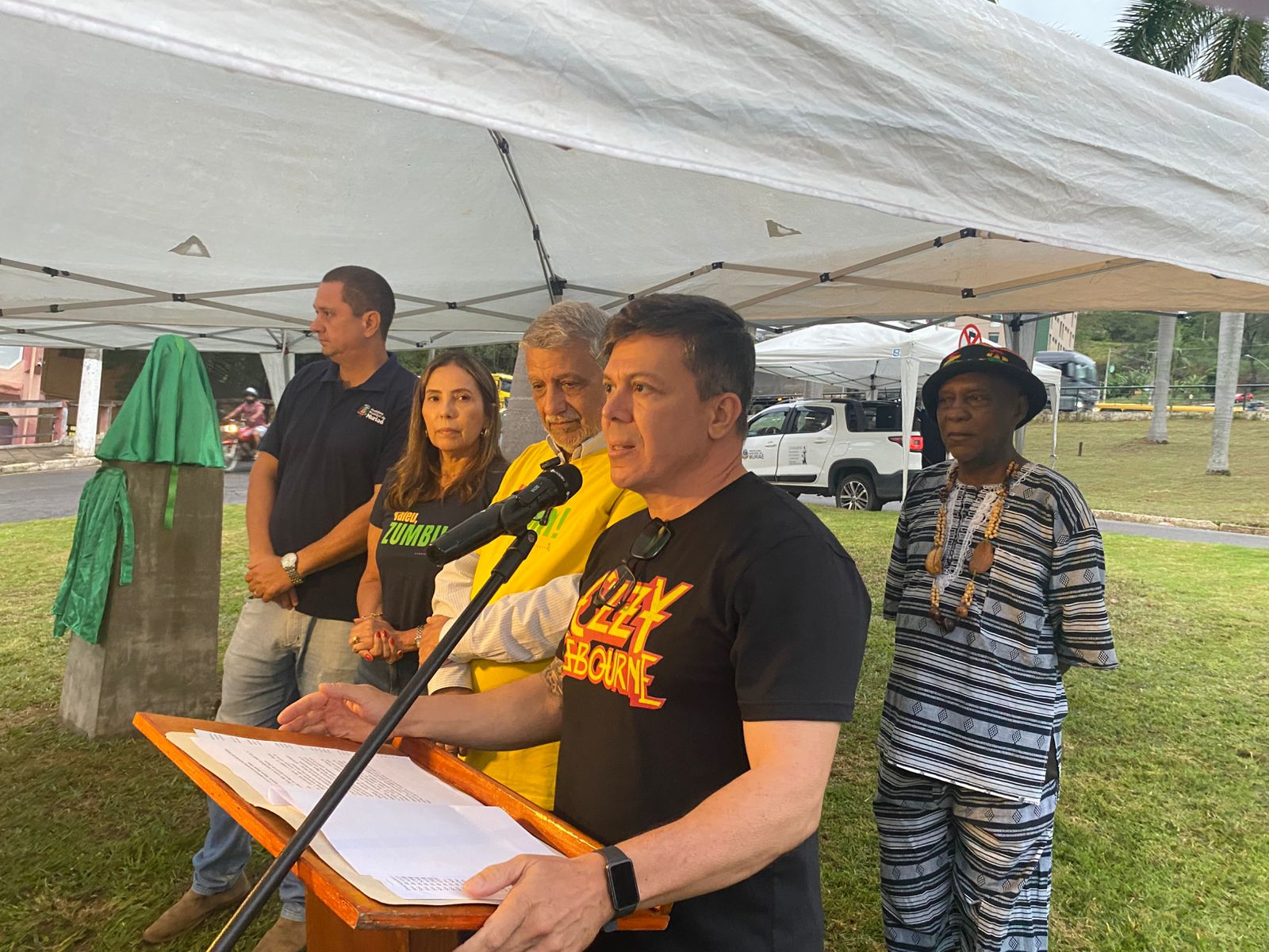 Durante a cerimônia, Joca, presidente do COMPIR, destacou a relevância do monumento como ferramenta de educação e pertencimento. O vereador Delegado Rangel Martino, representando a Câmara Municipal, reforçou o papel das políticas públicas na promoção da igualdade racial. A secretária Tatiana Rangel Viana enfatizou que homenagear Zumbi é reconhecer a importância da resistência negra para a construção do país. Em seu discurso, o prefeito Dr. Marcos Guarino ressaltou que o busto é um marco para a cidade — um gesto de respeito, reconhecimento e compromisso com a justiça social.