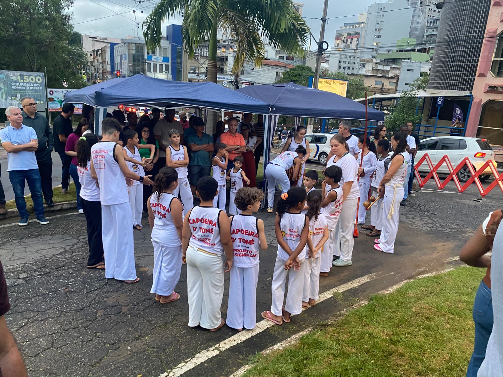 O momento mais aguardado foi o descerramento oficial, reunindo autoridades, convidados e a vereadora Mestra Chaveirinho. Em seguida, o Grupo de Capoeira D’Tomé emocionou o público com uma apresentação vibrante. Formado por 25 crianças e jovens dos bairros São Joaquim e Joanópolis, o grupo mantém viva uma das expressões culturais mais representativas da herança africana no Brasil.