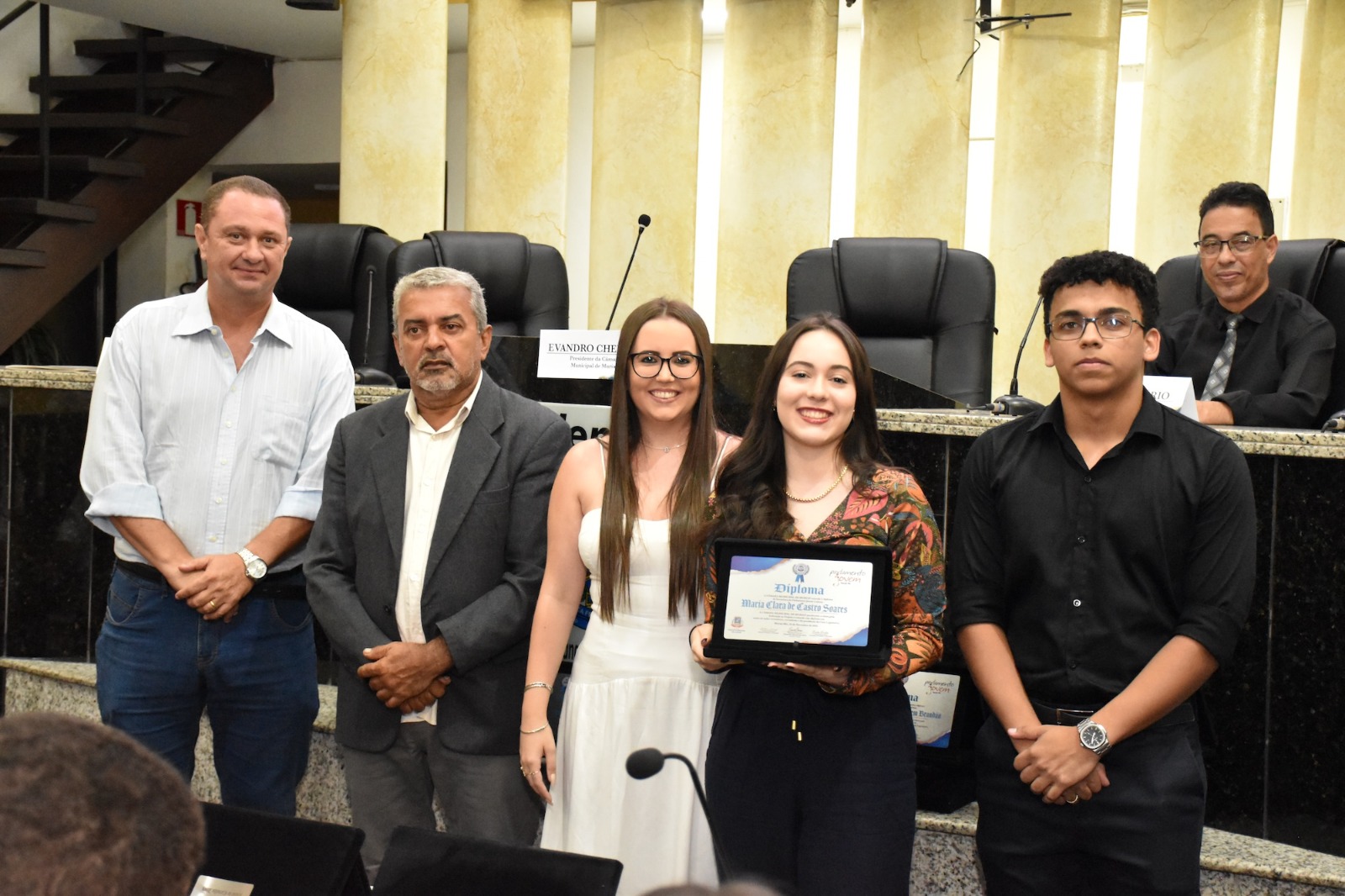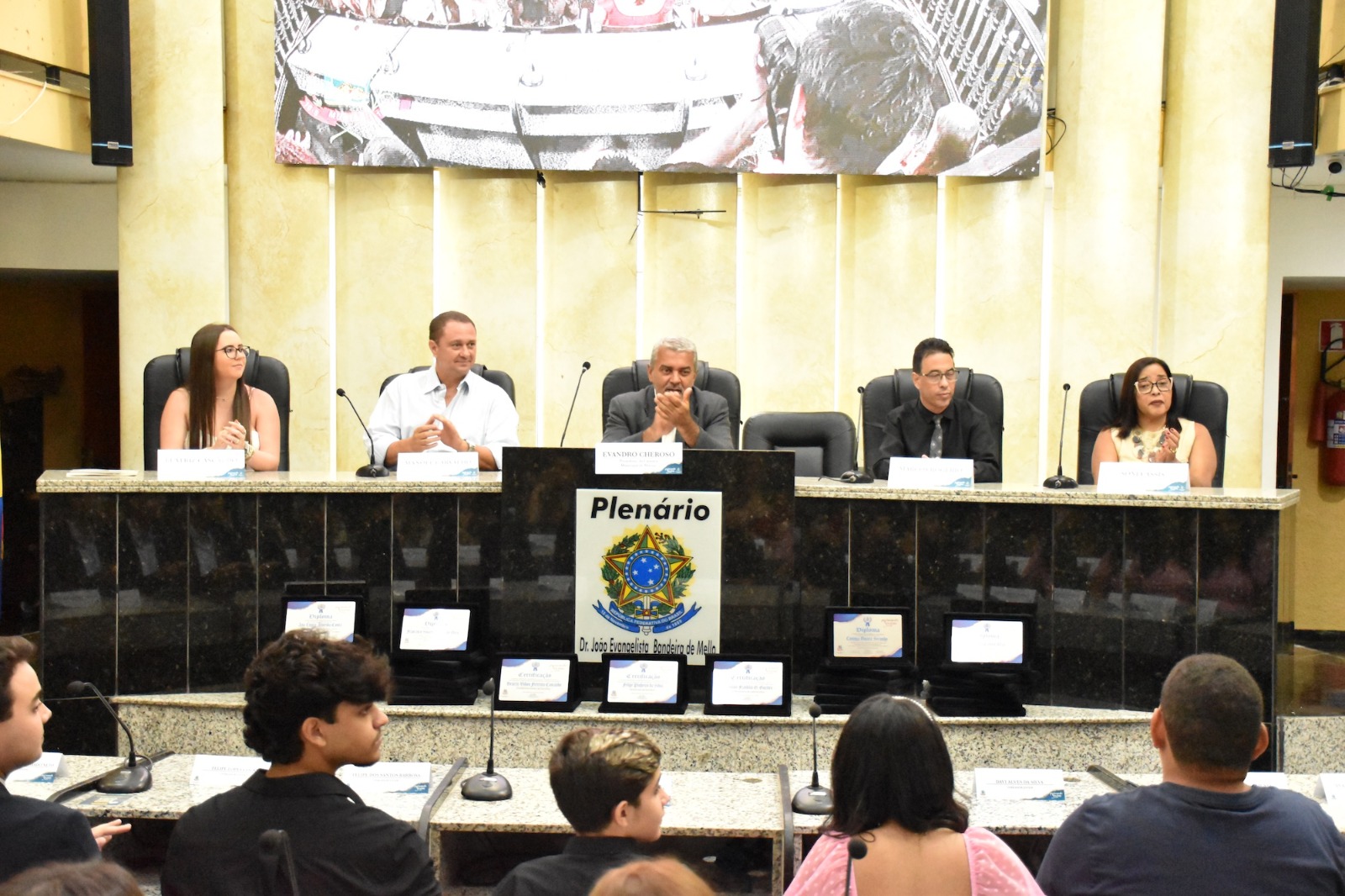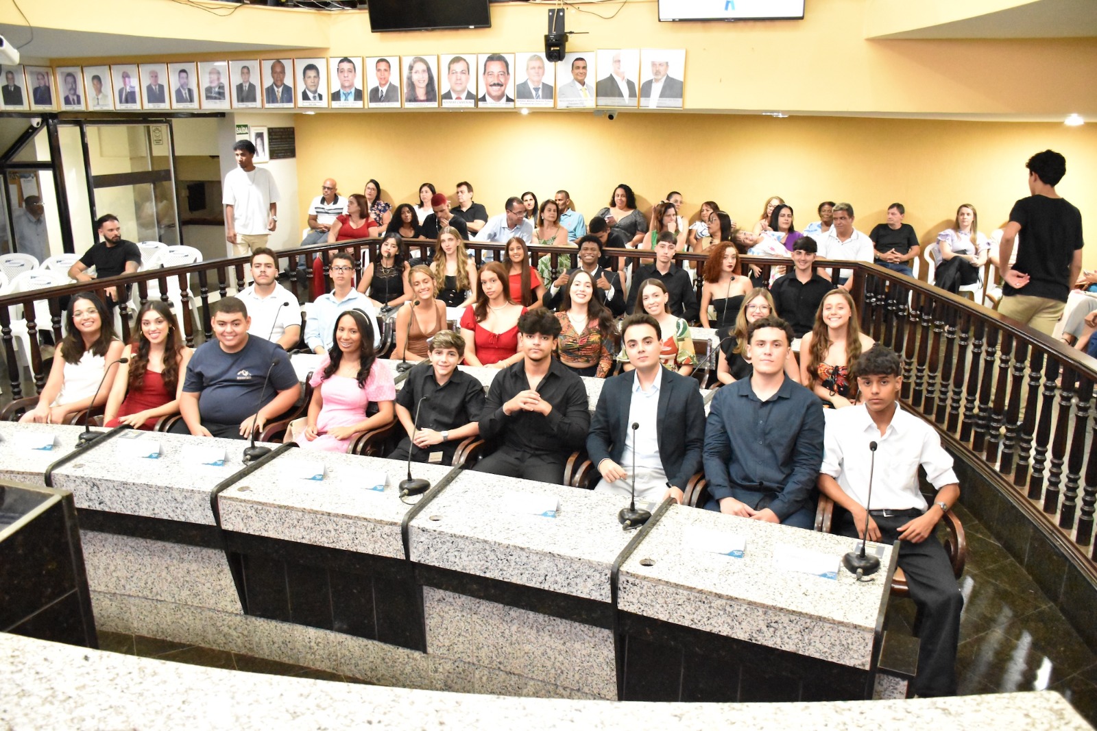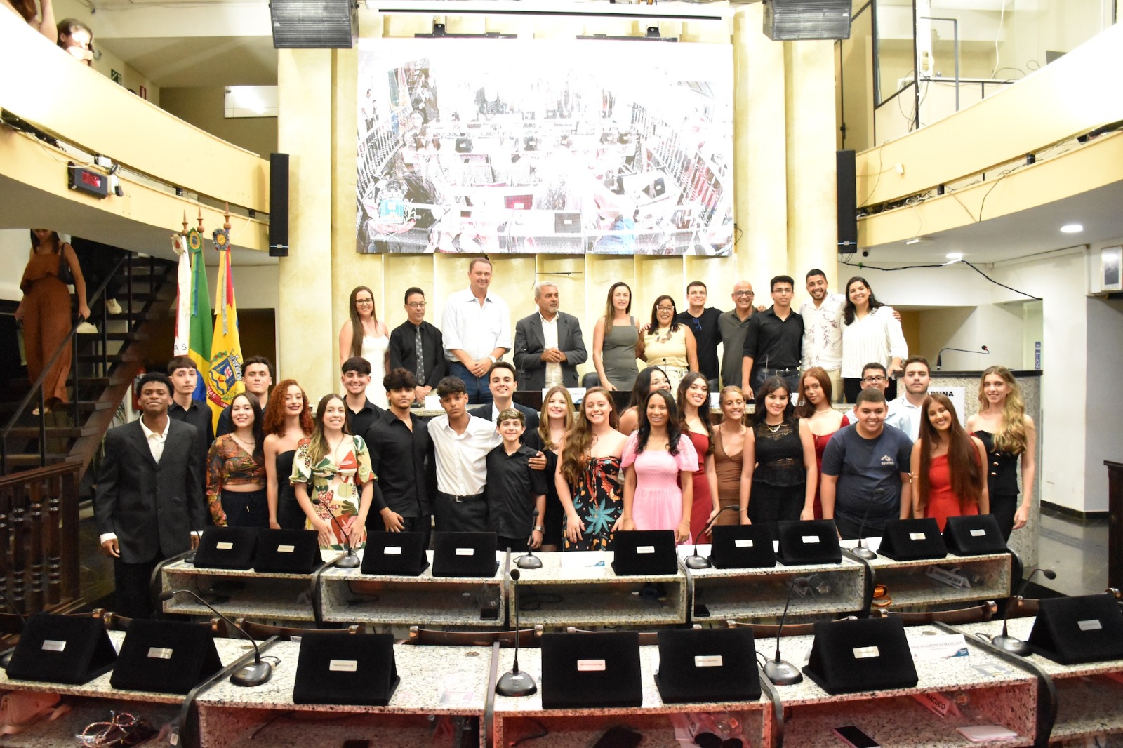 Na solenidade de encerramento das atividades de 2025 em Muriaé, o presidente da Câmara, Vereador Evandro Cheroso (SOLIDARIEDADE) reuniu os vereadores, familiares dos jovens parlamentares, representantes das escolas e diversas autoridades, certificando os 25 estudantes por suas atividades no PJ em 2025.