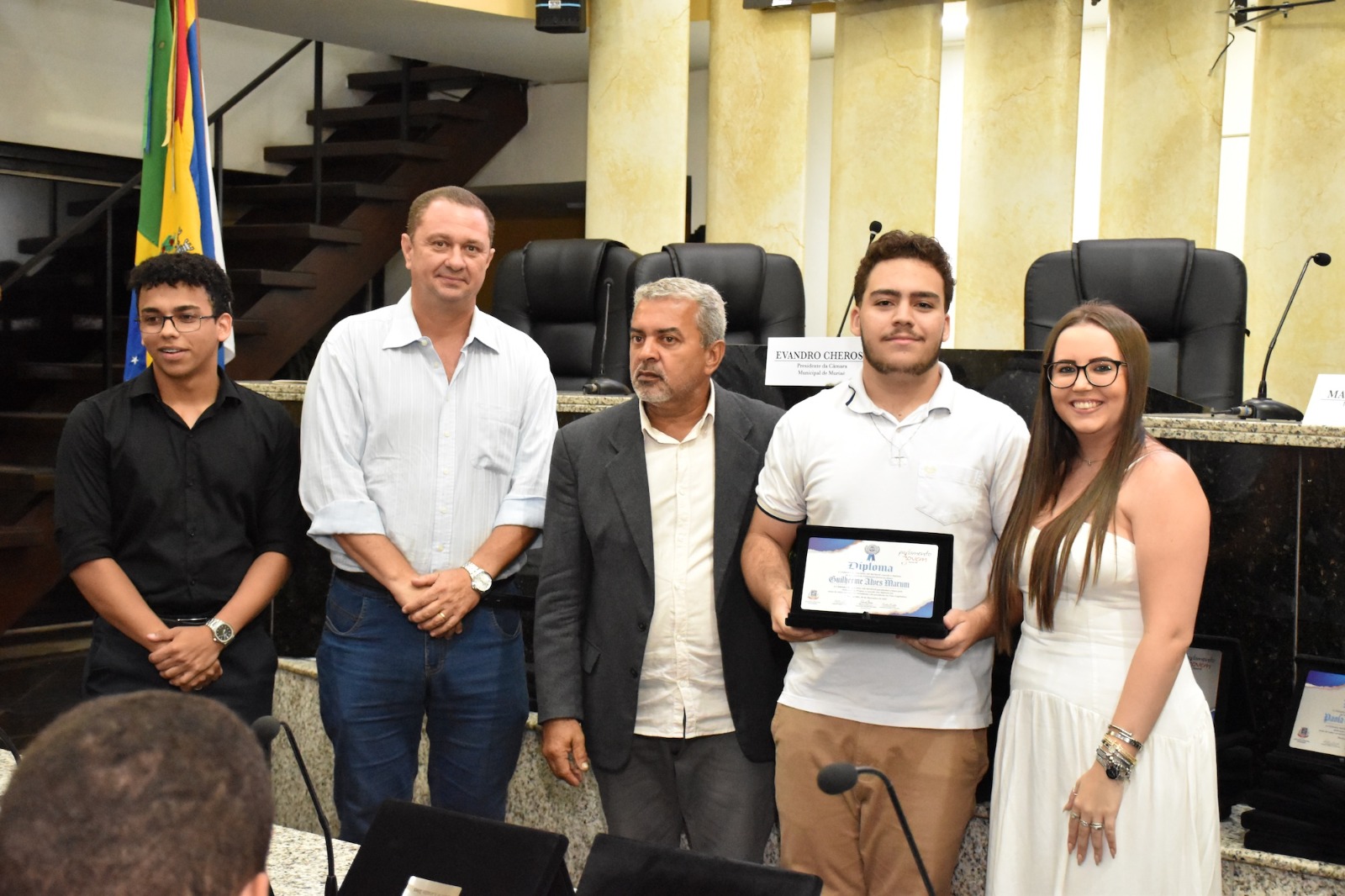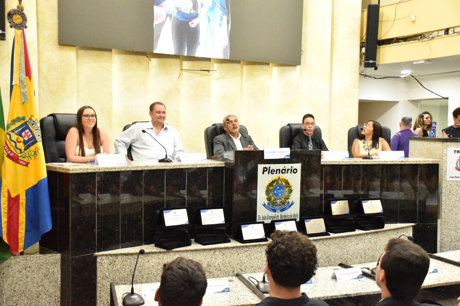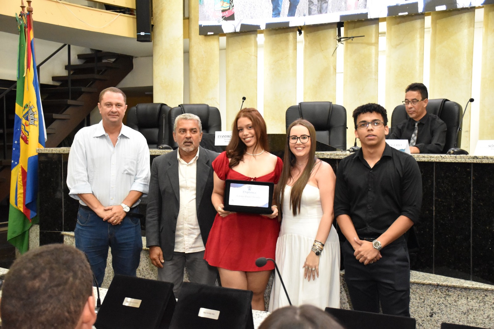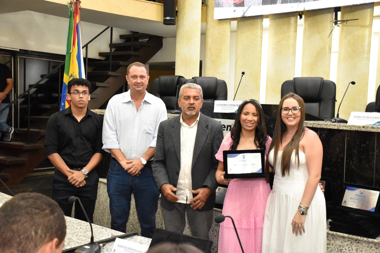 Na solenidade de encerramento das atividades de 2025 em Muriaé, o presidente da Câmara, Vereador Evandro Cheroso (SOLIDARIEDADE) reuniu os vereadores, familiares dos jovens parlamentares, representantes das escolas e diversas autoridades, certificando os 25 estudantes por suas atividades no PJ em 2025.