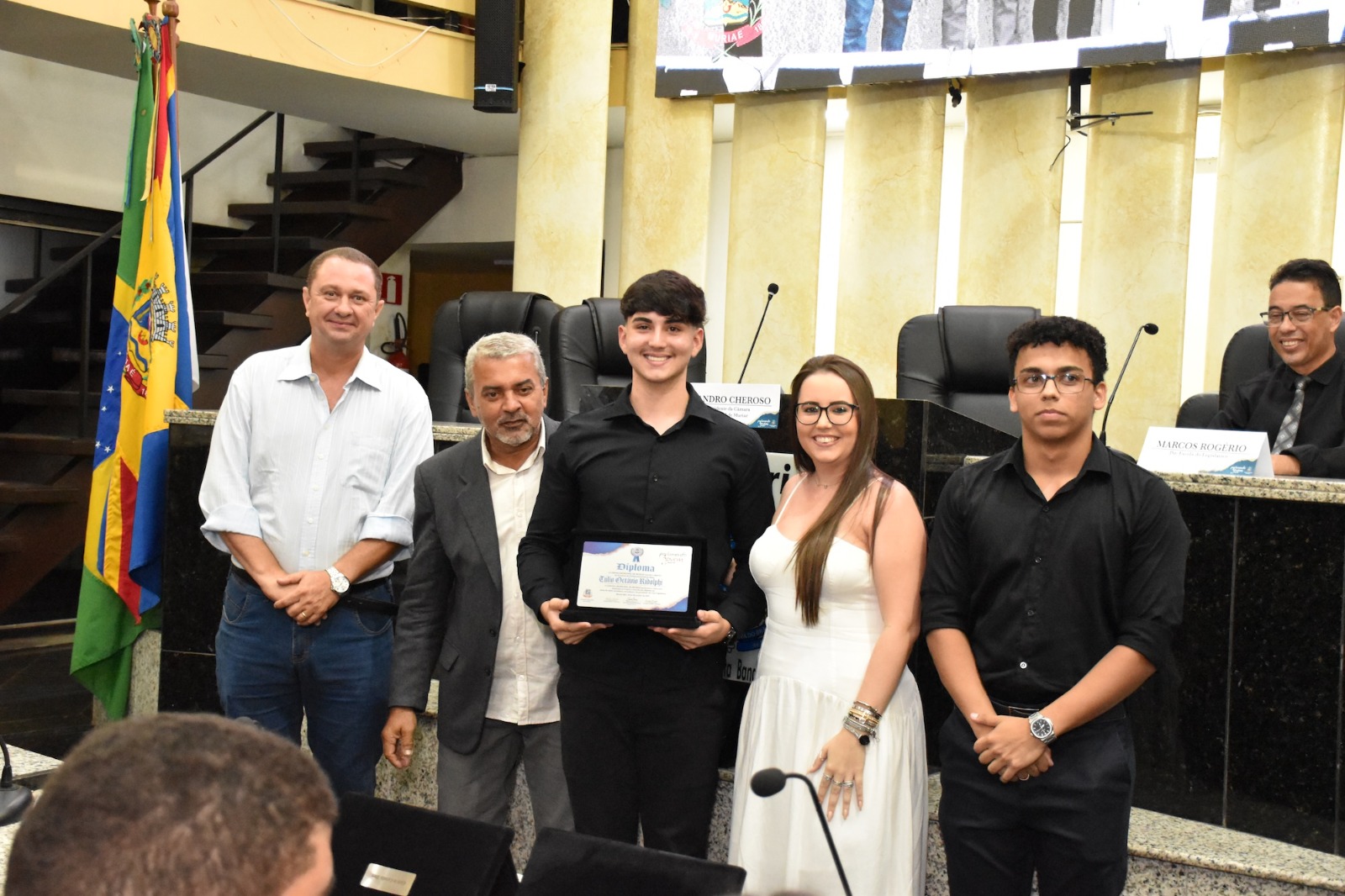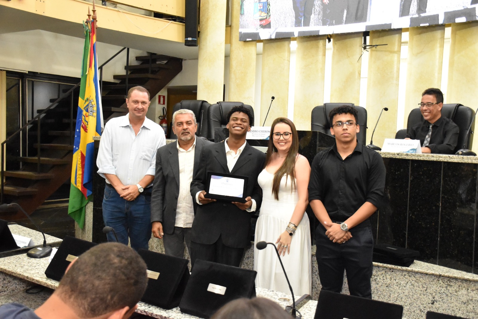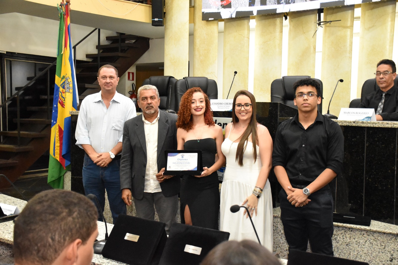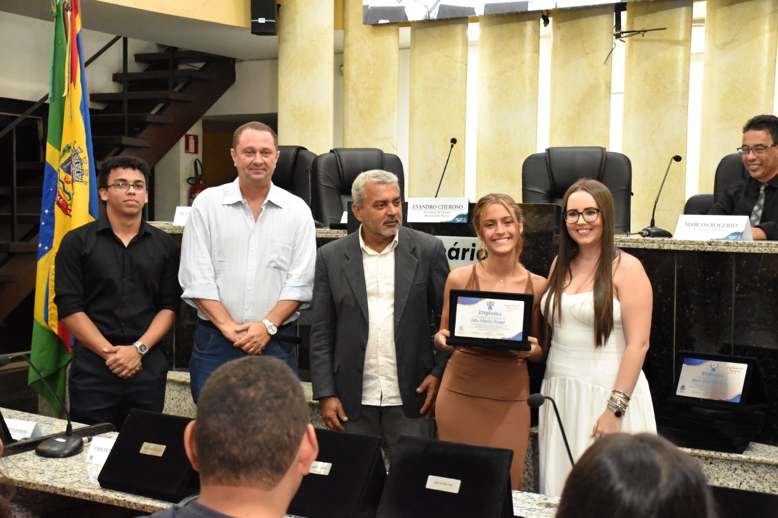 Na solenidade de encerramento das atividades de 2025 em Muriaé, o presidente da Câmara, Vereador Evandro Cheroso (SOLIDARIEDADE) reuniu os vereadores, familiares dos jovens parlamentares, representantes das escolas e diversas autoridades, certificando os 25 estudantes por suas atividades no PJ em 2025.