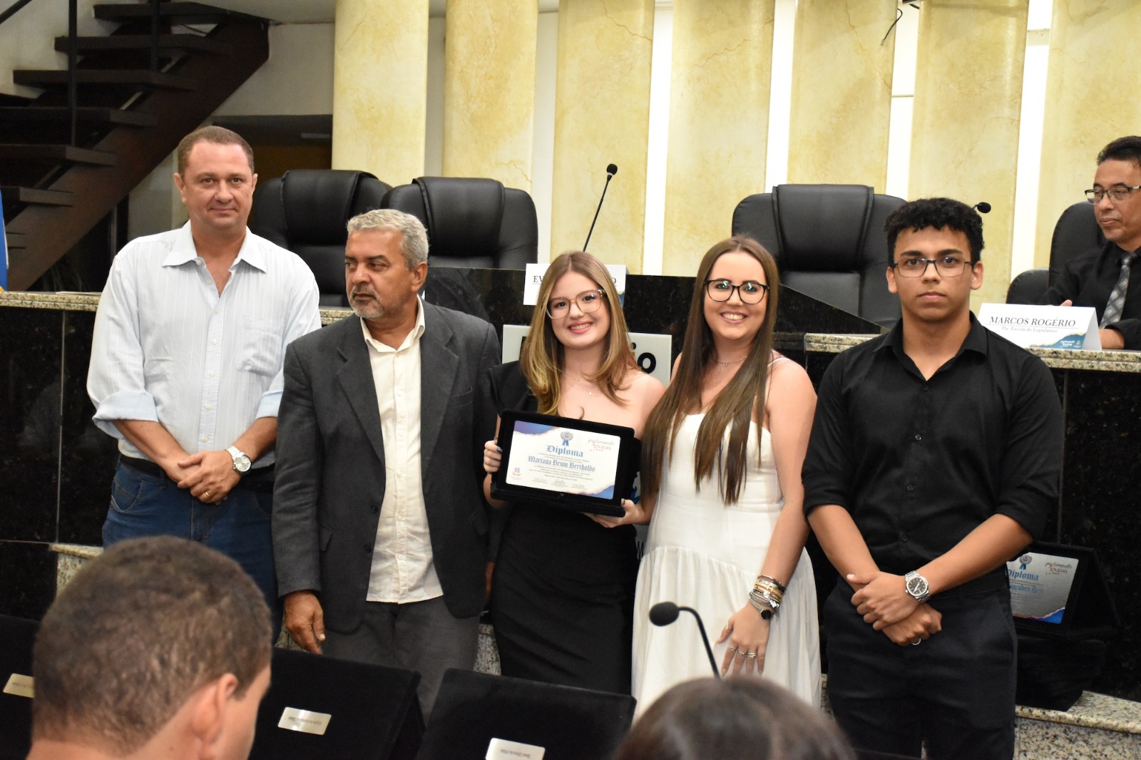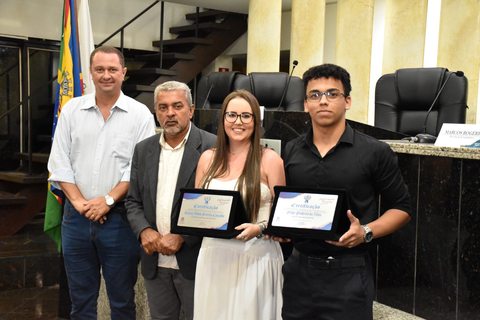 Em Muriaé, o Parlamento Jovem é coordenado pelas advogadas Beatriz Cascardo e Caroline Guedes e foram certificados os estudantes: