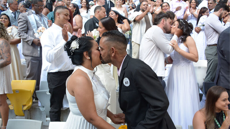O TJMG realizou o mutirão de conversão de união estável em casamento de 101 casais, na Arena MRV, na Capital mineira (Crédito: Juarez Rodrigues / TJMG)