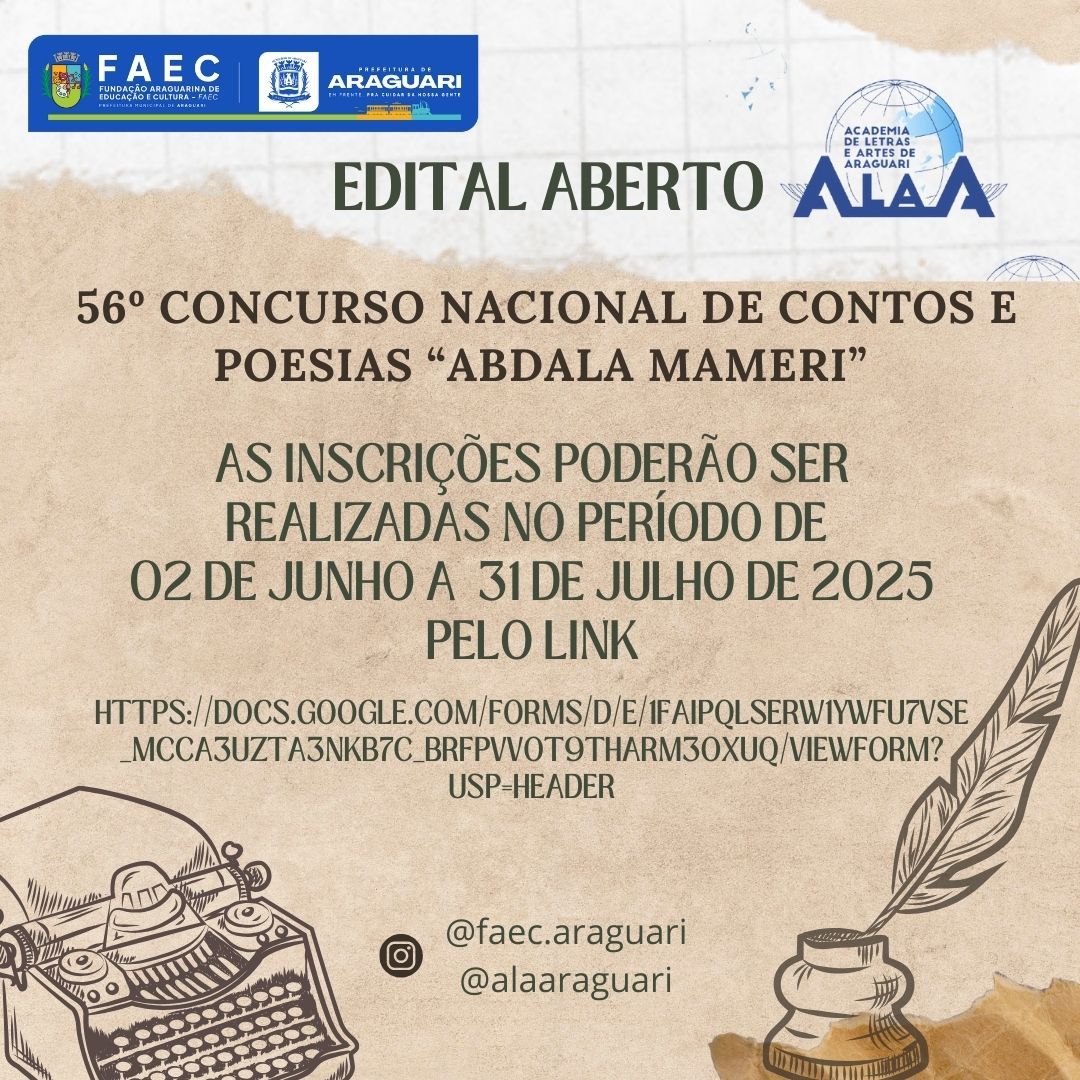 O Cine Teatro Odette, sede do Ponto de Cultura Sementear, foi palco na noite de 29 de novembro de 2025 de uma das mais tradicionais celebrações literárias do país: a cerimônia de premiação do 56º Concurso Nacional de Contos e Poesias Abdala Mameri. Realizado pela Academia de Letras e Artes de Araguari (ALAA), em parceria com a Fundação Araguarina de Educação e Cultura (FAEC), o evento reuniu escritores, autoridades, artistas e convidados em uma noite dedicada à arte, à memória e ao reconhecimento da produção literária brasileira.