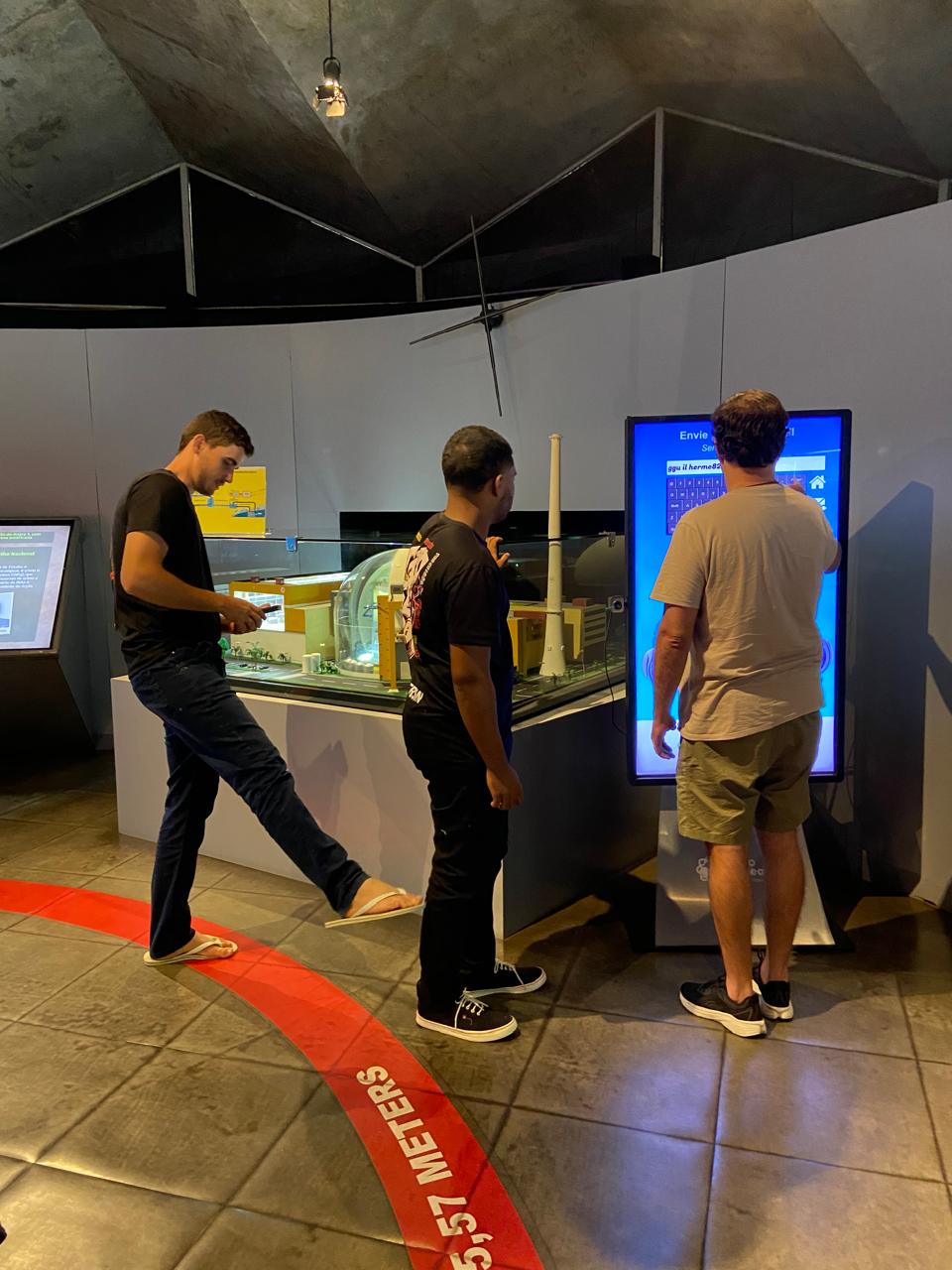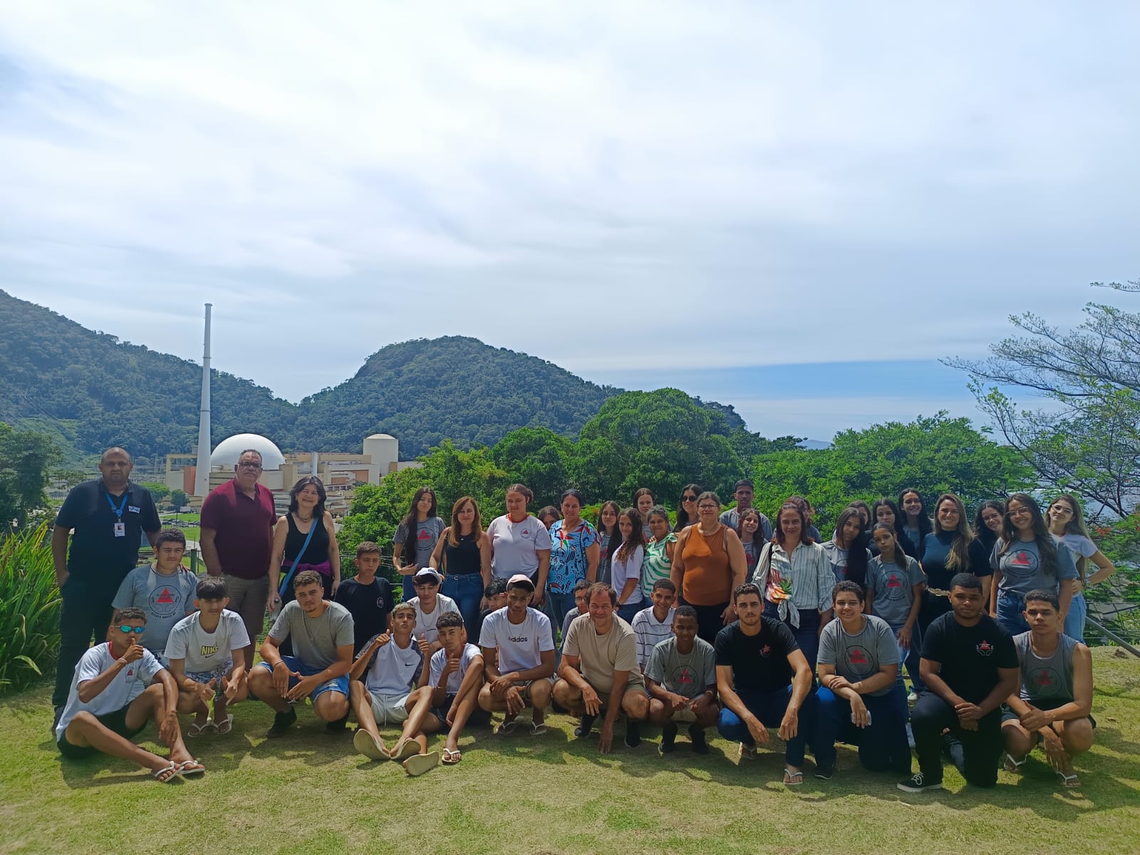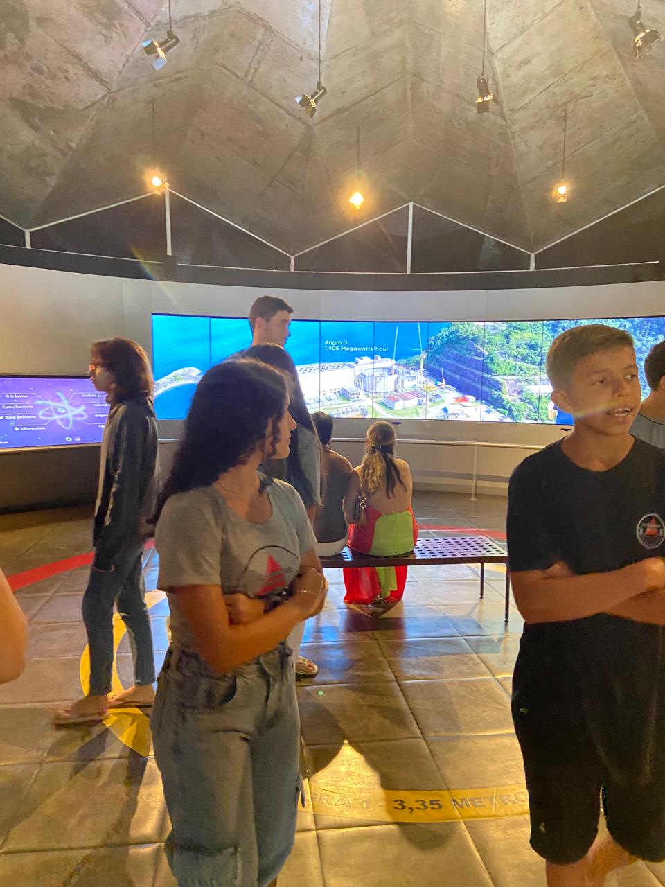 Durante a viagem, estudantes e professores visitaram o Observatório Nuclear de Angra dos Reis, onde tiveram a oportunidade de conhecer de perto o funcionamento do complexo nuclear brasileiro. O grupo percorreu as instalações das usinas Angra 1 e Angra 2 e conheceu também a área da Angra 3, atualmente em fase de construção, aprofundando conteúdos relacionados à ciência, energia e tecnologia.