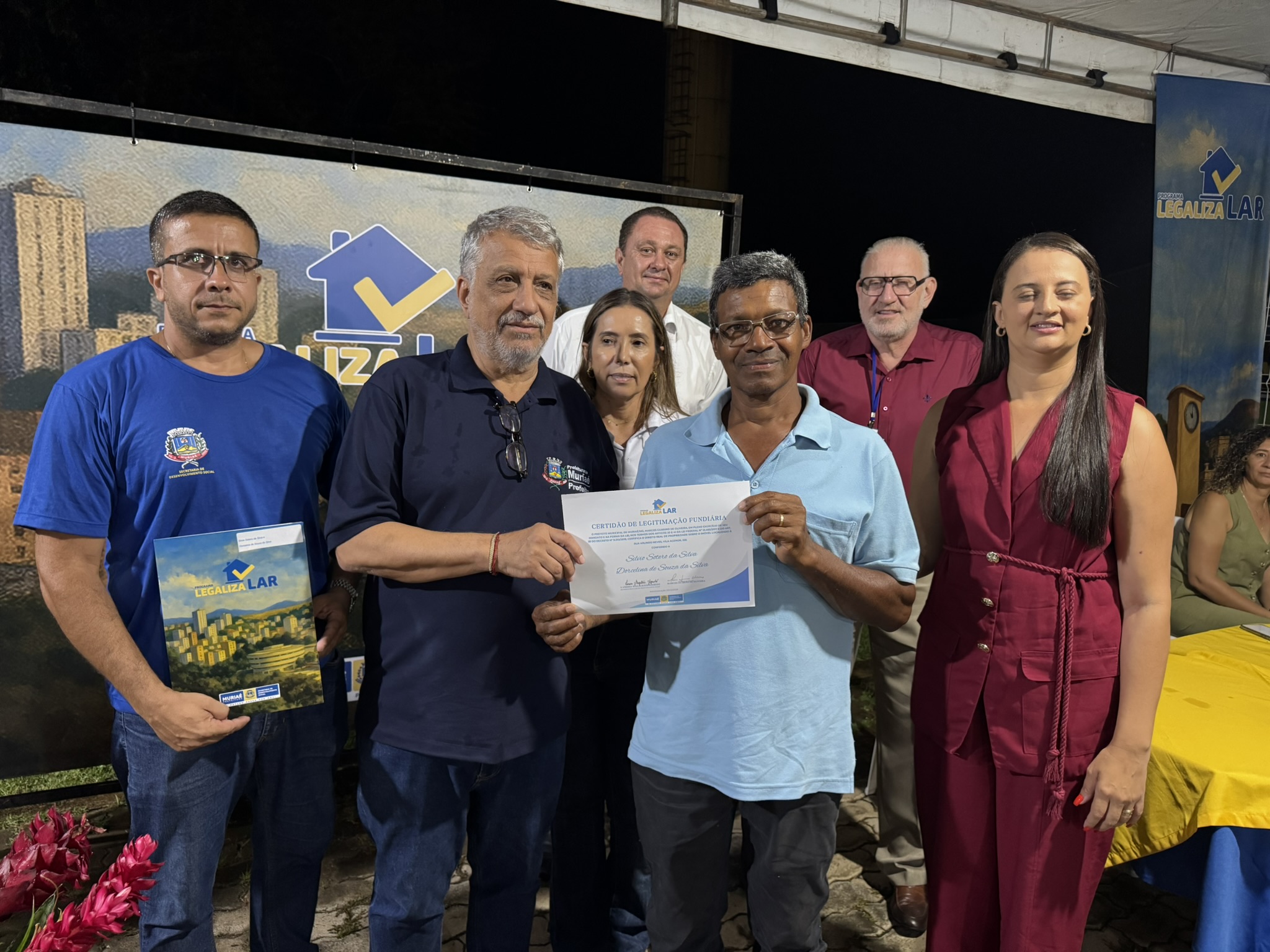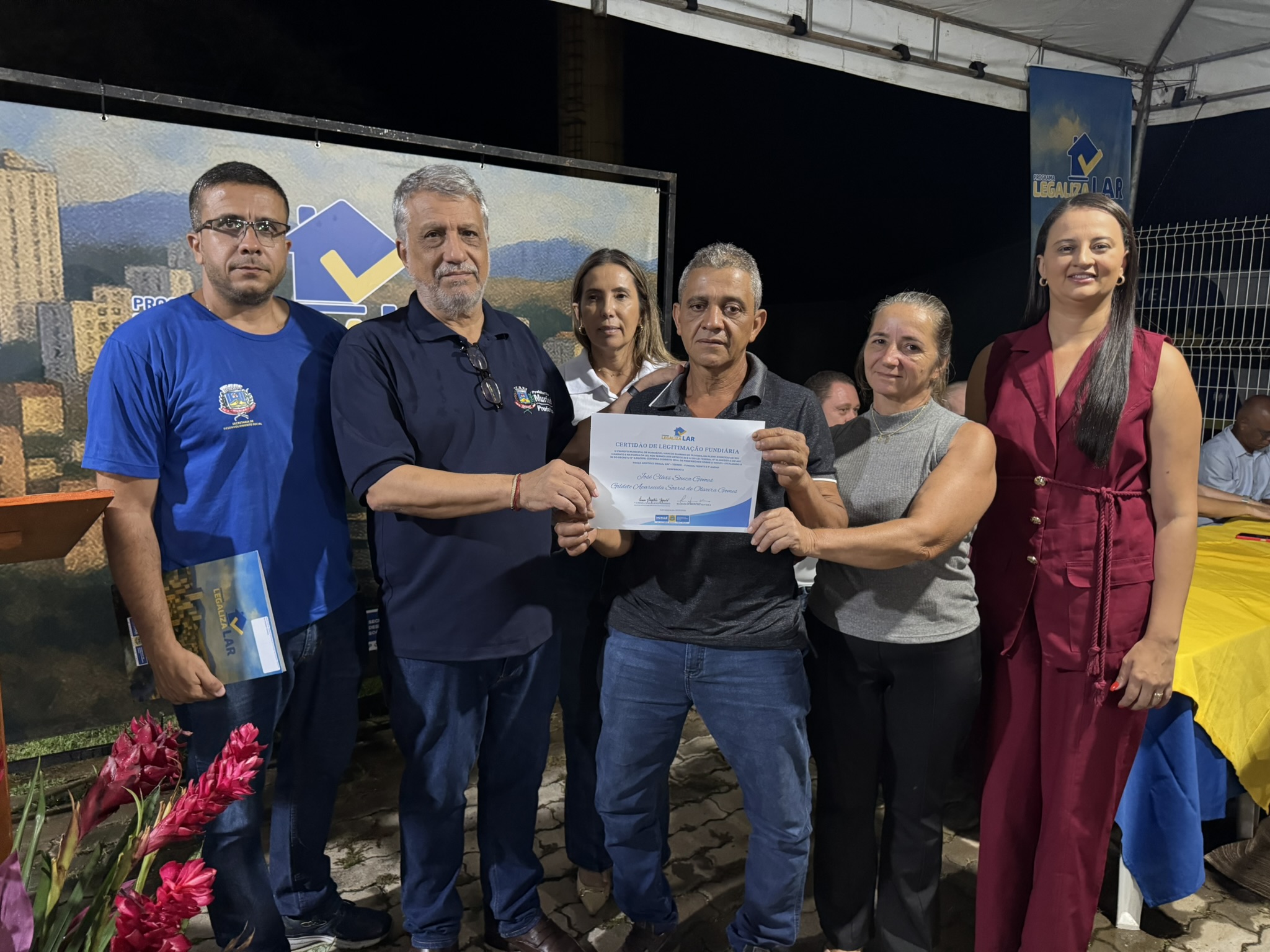 A Prefeitura Municipal de Muriaé promoveu, na noite de segunda-feira, 15 de dezembro, a solenidade de entrega de 263 Títulos de Legitimação Fundiária aos moradores do distrito de Bom Jesus da Cachoeira. A ação foi realizada por meio da Secretaria Municipal de Desenvolvimento Social, em parceria com o Programa Legaliza Lar.