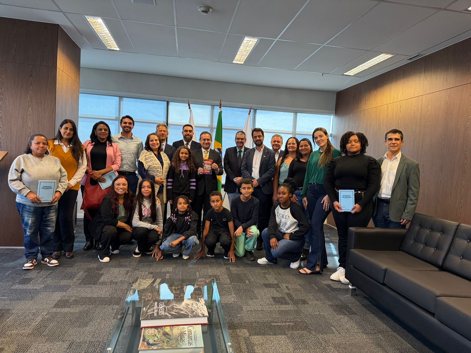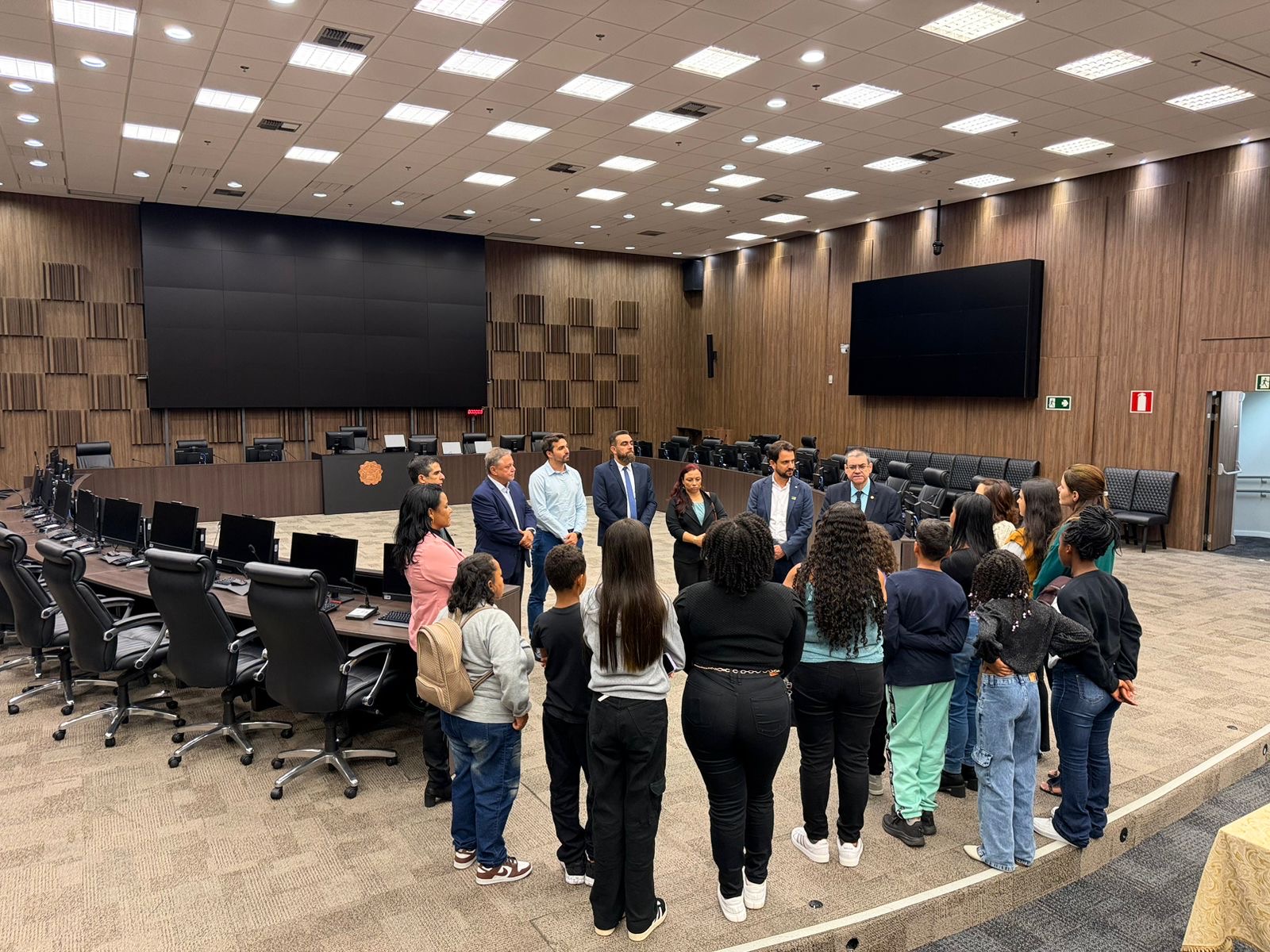 Os alunos premiados tiveram a oportunidade de conhecer o desembargador Pedro Aleixo Neto e presentearam-no com uma antologia que reúne os textos e ilustrações vencedoras. Além disso, puderam aprender sobre o funcionamento do Tribunal.