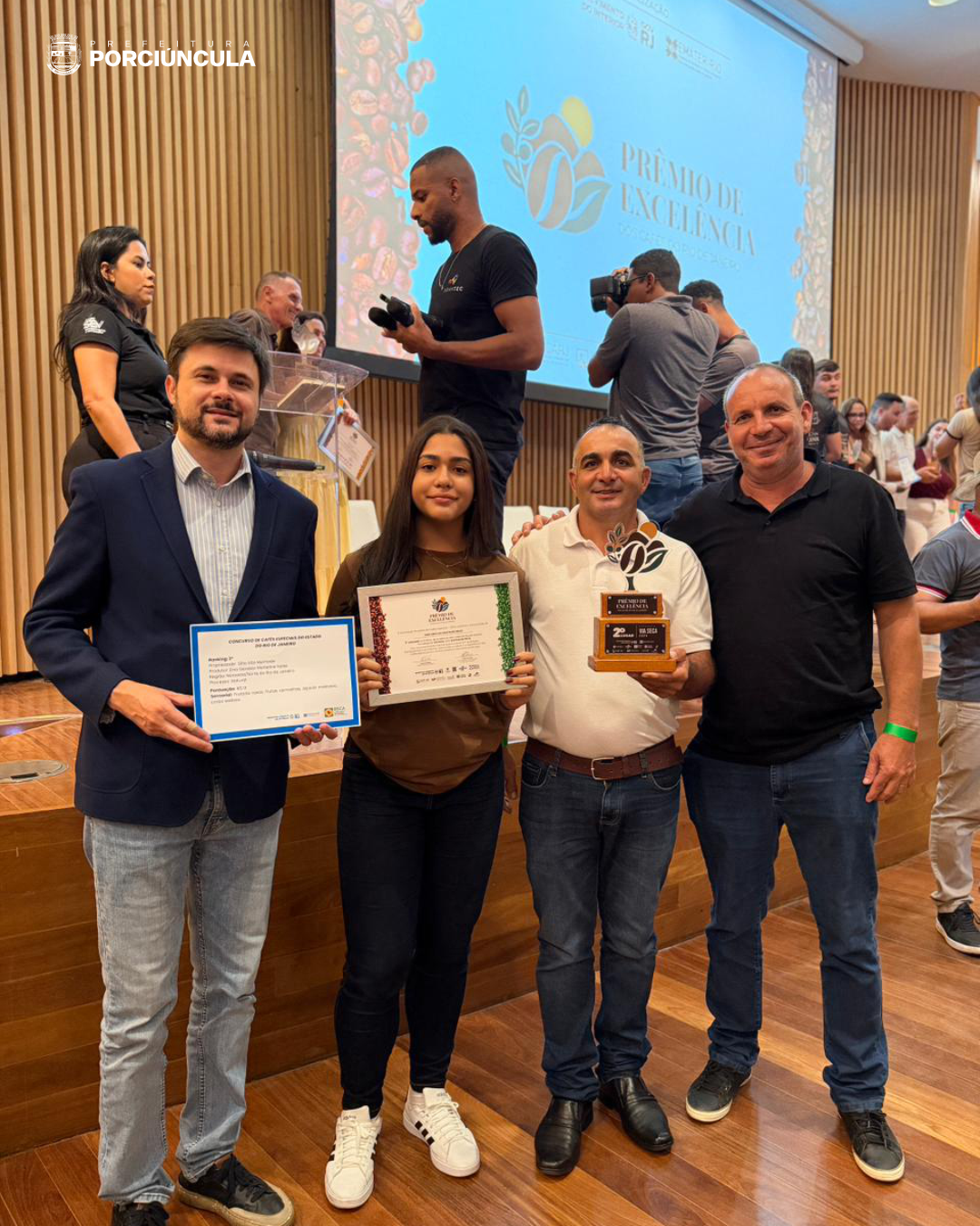 Porciúncula reafirmou seu protagonismo na cafeicultura fluminense ao conquistar posições de destaque no I Prêmio Excelência – Cafés do Rio, consolidando-se como referência estadual na produção de cafés de qualidade. O município é o único do país a contar com uma Secretaria Municipal dedicada exclusivamente à cafeicultura, o que reforça a relevância dos resultados alcançados.