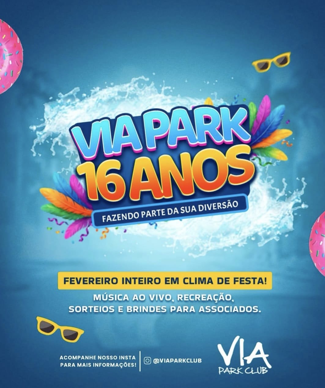 Neste domingo, 01 de fevereiro, o Via Park Club, um dos clubes tradicionais de Muriaé, comemora seus 16 anos de história com uma programação especial para associados e público em geral. A festa marca mais de uma década de lazer, convivência, esporte e confraternização em um dos endereços mais conhecidos de entretenimento da cidade.