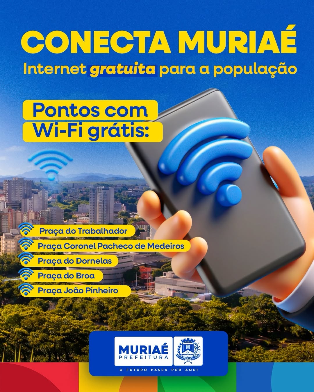 A Prefeitura de Muriaé segue investindo em inclusão digital e acesso à informação por meio do Conecta Muriaé, programa que oferece internet gratuita em pontos estratégicos da cidade, garantindo mais conectividade à população.