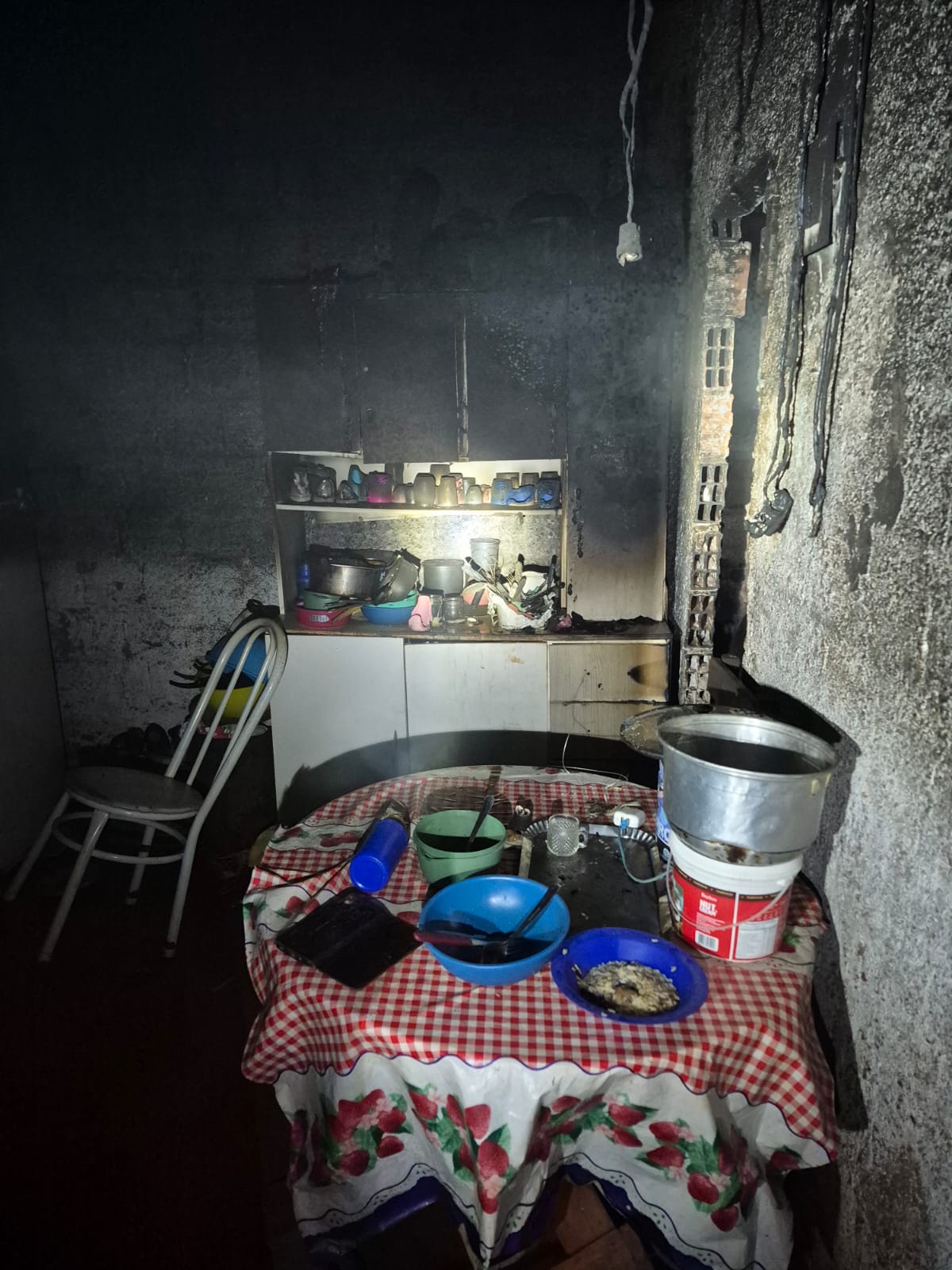 O imóvel atingido tinha três cômodos e o fogo já estava alto. Segundo vizinhos, tudo começou após um estouro na fiação elétrica. Logo depois, as chamas se espalharam rapidamente.