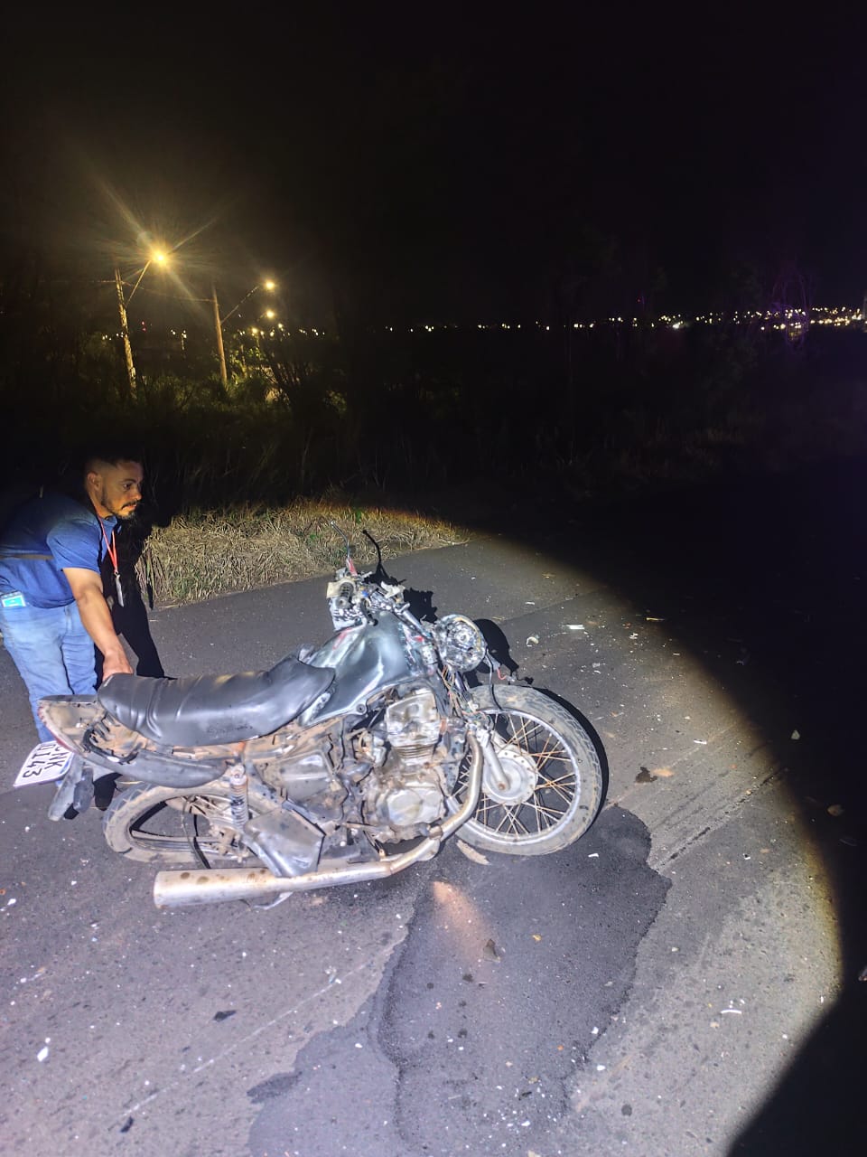A perícia esteve no local para os trabalhos técnicos. A motocicleta foi removida, pois estava com o licenciamento atrasado, e o corpo foi encaminhado pela funerária.