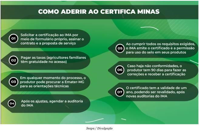 “Em Minas Gerais, os produtores que já foram atendidos pelo Certifica Minas estão colhendo os benefícios dessa política: valorização da marca junto ao público consumidor, acesso a mercados diferenciados, transparência, melhorias nos processos de gestão do negócio, ampliação das boas práticas de produção e otimização no uso dos recursos naturais”.