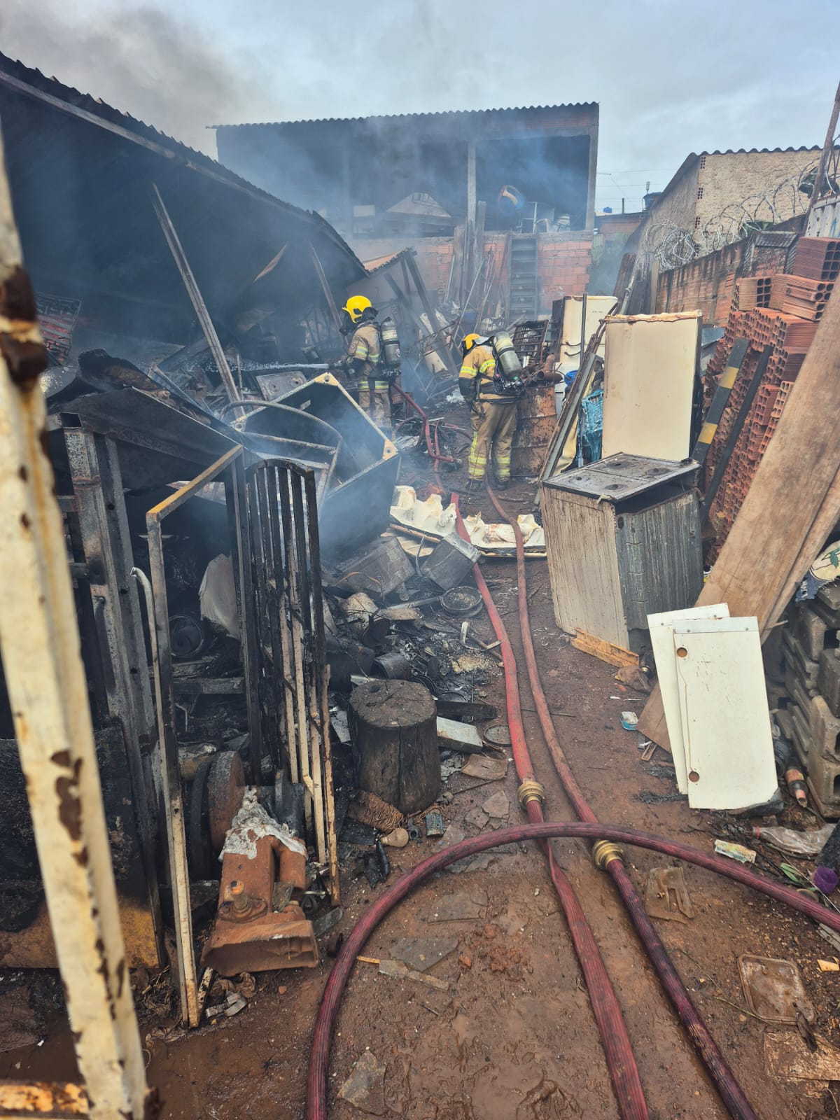 Para o combate às chamas foi necessária a montagem de estabelecimento completo, com uma linha adutora de 2½ polegadas e três linhas de ataque para enfrentamento direto do incêndio. O imóvel possui cobertura metálica e armazenava grande quantidade de sucata e materiais recicláveis sob a estrutura. Nos fundos há uma residência de dois pavimentos.