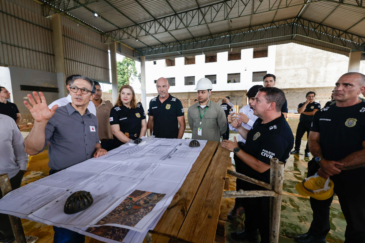 O governador de Minas Gerais, Romeu Zema, vistoriou, nesta segunda-feira (23/2), as obras para a construção do complexo de unidades da Polícia Civil de Minas Gerais (PCMG) em Paracatu, no Noroeste do estado.