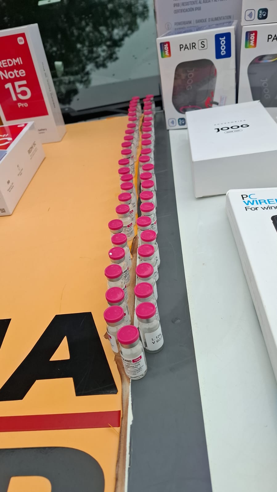 Os policiais abordaram um veículo e encontraram uma grande quantidade de medicamentos e produtos eletrônicos vindos do Paraguai. Entre o material estavam 177 ampolas de Tirzepatida, conhecida como Mojaro, um medicamento que é proibido no Brasil e não tem autorização da Anvisa.
