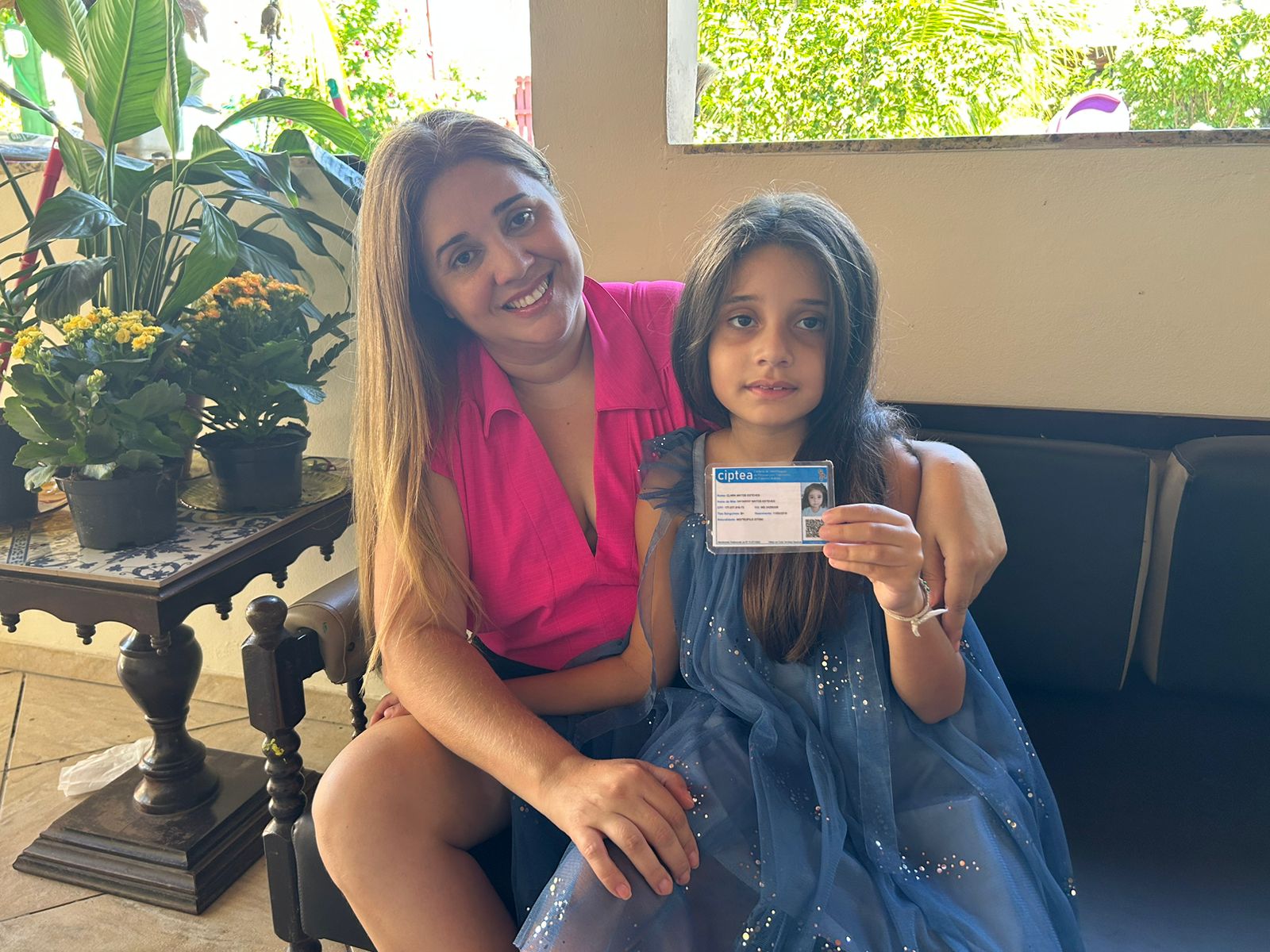 "A Ciptea nos ajuda muito, porque com a carteira não precisamos apresentar laudos para comprovar que ela se enquadra no espectro autista. Todo o atendimento da minha filha é facilitado quando apresentamos a Ciptea. A própria Clara apresenta o documento em parques, serviços públicos e até em passagens aéreas", relata a mãe.