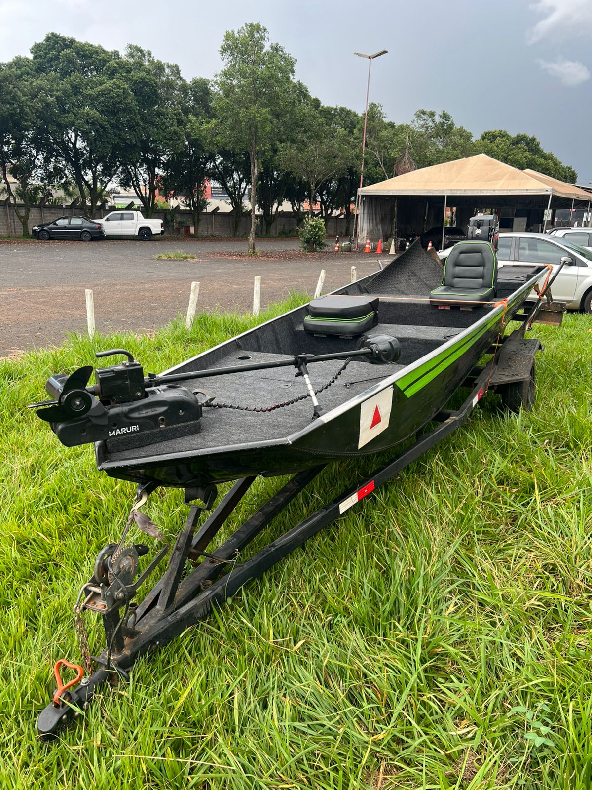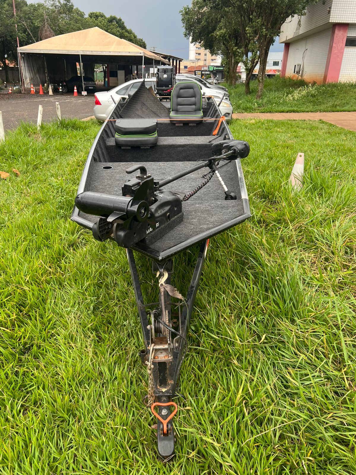 Diante da suspeita, os policiais passaram a acompanhar discretamente o veículo e em dado momento procederam à abordagem policial, procedendo-se a identificação do condutor do veículo. Questionado sobre a procedência da embarcação, motor e do reboque, ele afirmou ter adquirido o bem em janeiro deste ano num estabelecimento comercial do ramo de pesca na cidade de Araguari/MG, apresentando documentos que alegou serem notas fiscais da compra.