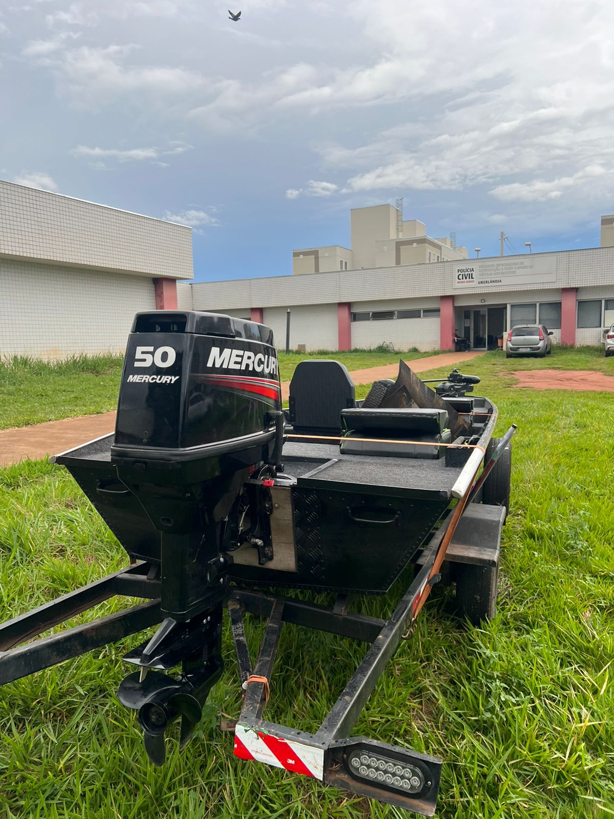 Na tarde de hoje (11/03), policiais civis da Delegacia de Homicídios de Uberlândia recuperaram, nesta data, uma embarcação plataformada, motor de popa 50 HP e carretinha, que haviam sido furtados no ano de 2023. A recuperação do bem ocorreu durante diligências realizadas no bairro Jardim Europa, quando os investigadores visualizaram um veículo estacionado em via pública transportando uma embarcação com características semelhantes às de um objeto de furto anteriormente registrado.