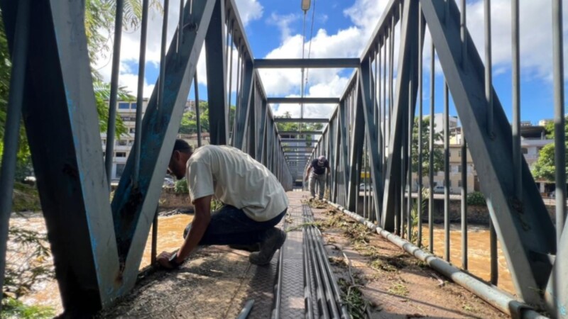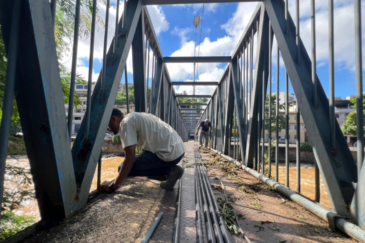 A Prefeitura de Muriaé realizou serviços de manutenção na passarela sobre o rio Muriaé, estrutura importante que liga o calçadão da avenida JK, na altura do Rosário, à rodovia BR-356, na região do bairro São Pedro.