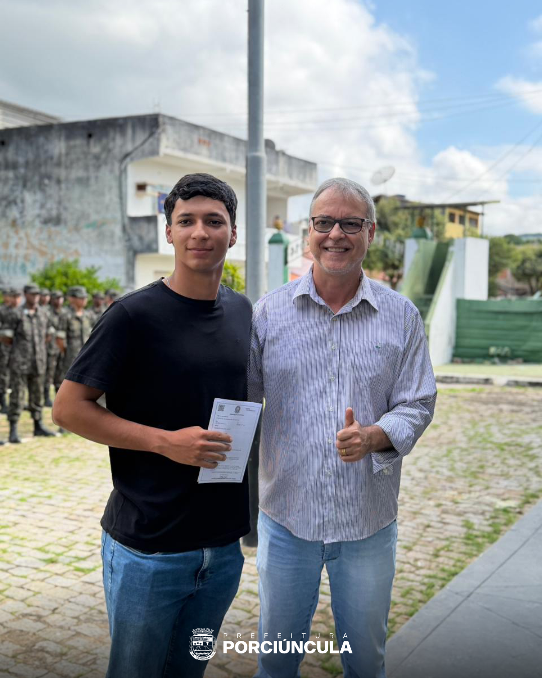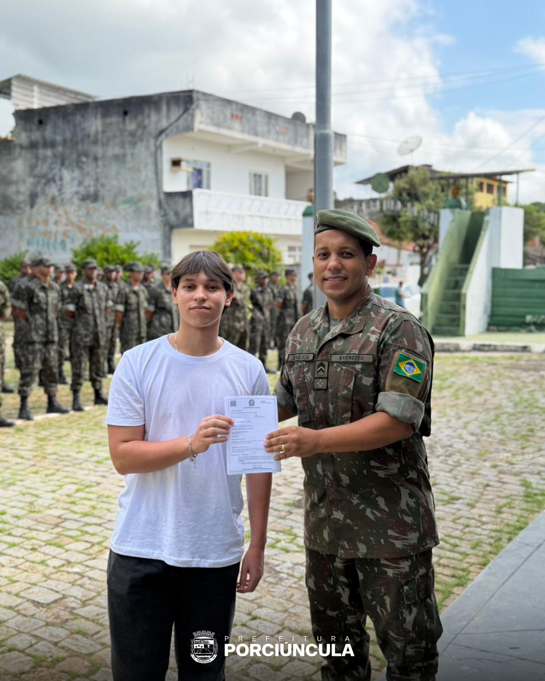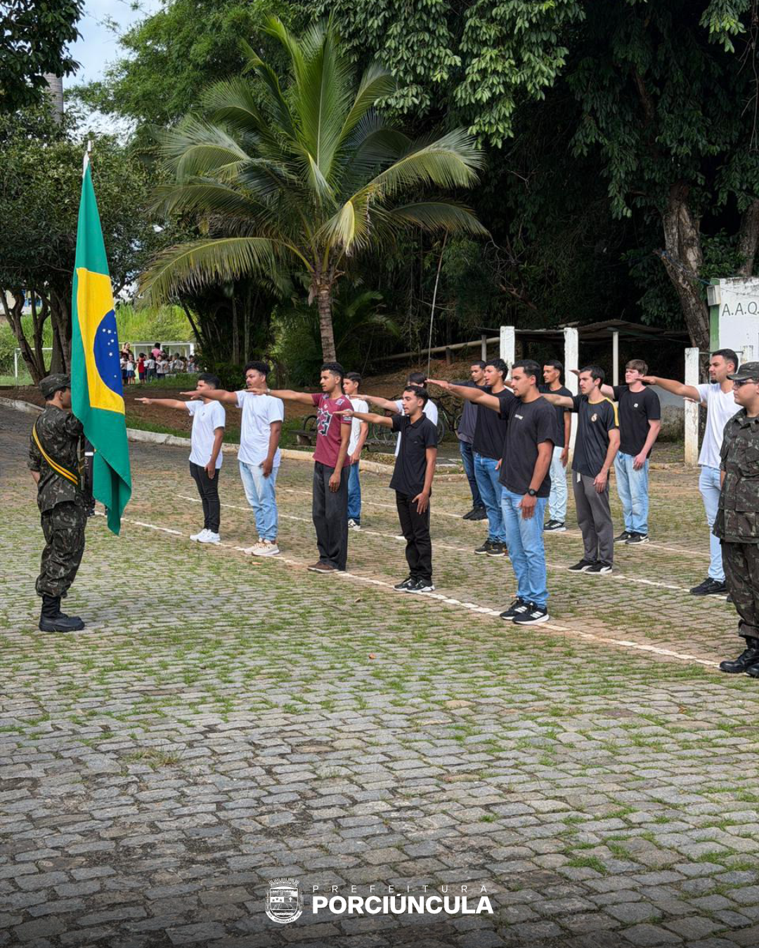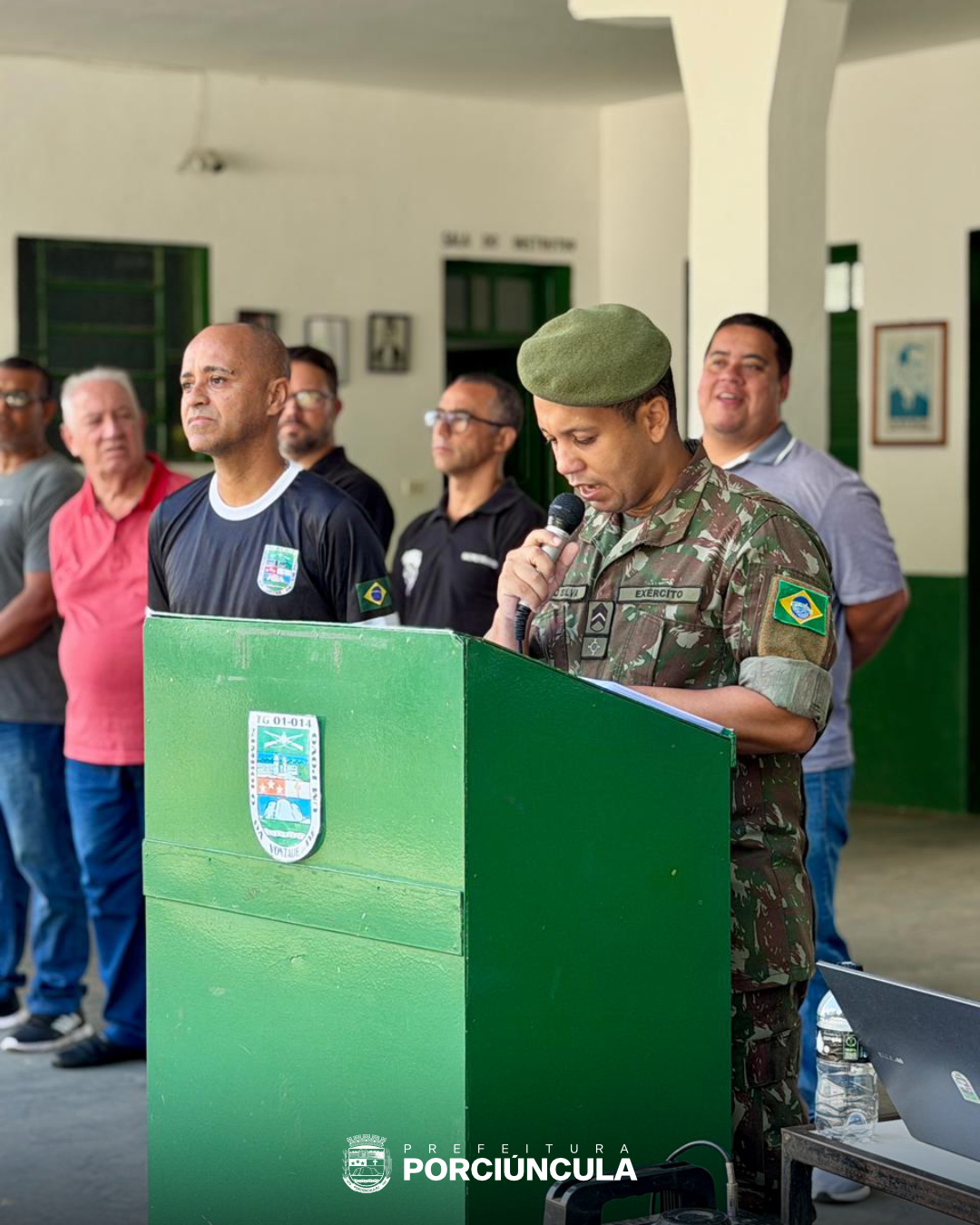 No dia 07 de abril, o Tiro de Guerra 01-014 de Porciúncula realizou uma importante solenidade de juramento à Bandeira Nacional pelos cidadãos dispensados do Serviço Militar inicial. O evento reuniu militares, civis e autoridades municipais, entre elas o prefeito Guilherme Fonseca, o presidente da Câmara dos Vereadores Saulo Calzolari e o sargento Danilo, que participaram da entrega dos certificados de dispensa.
