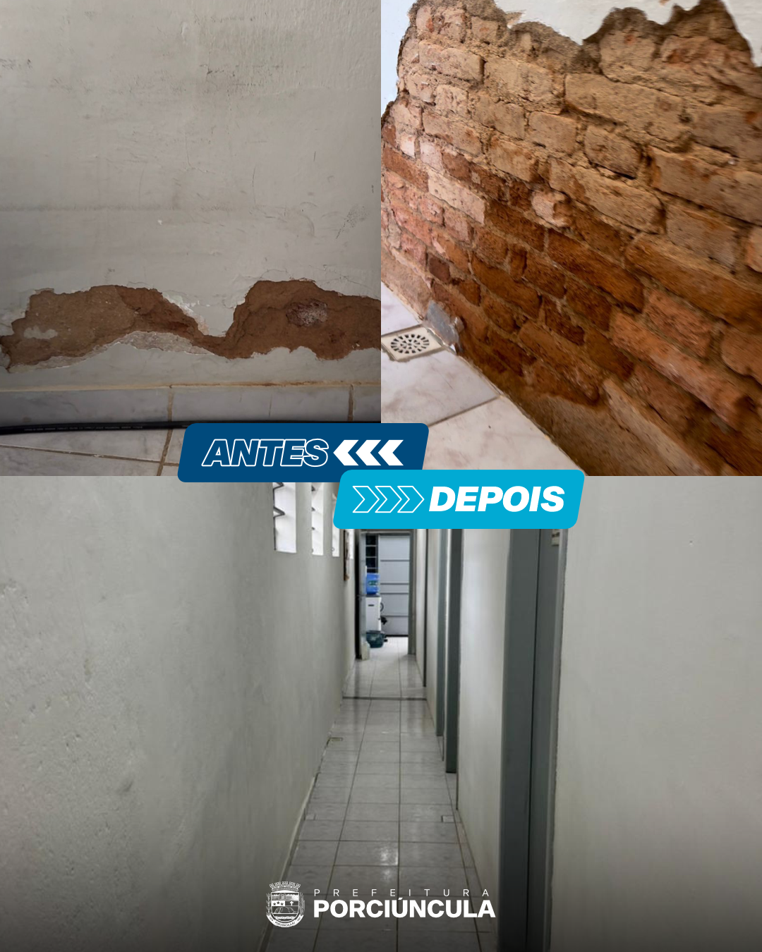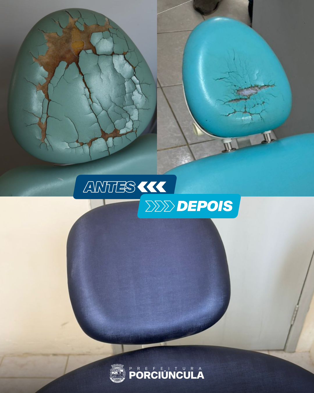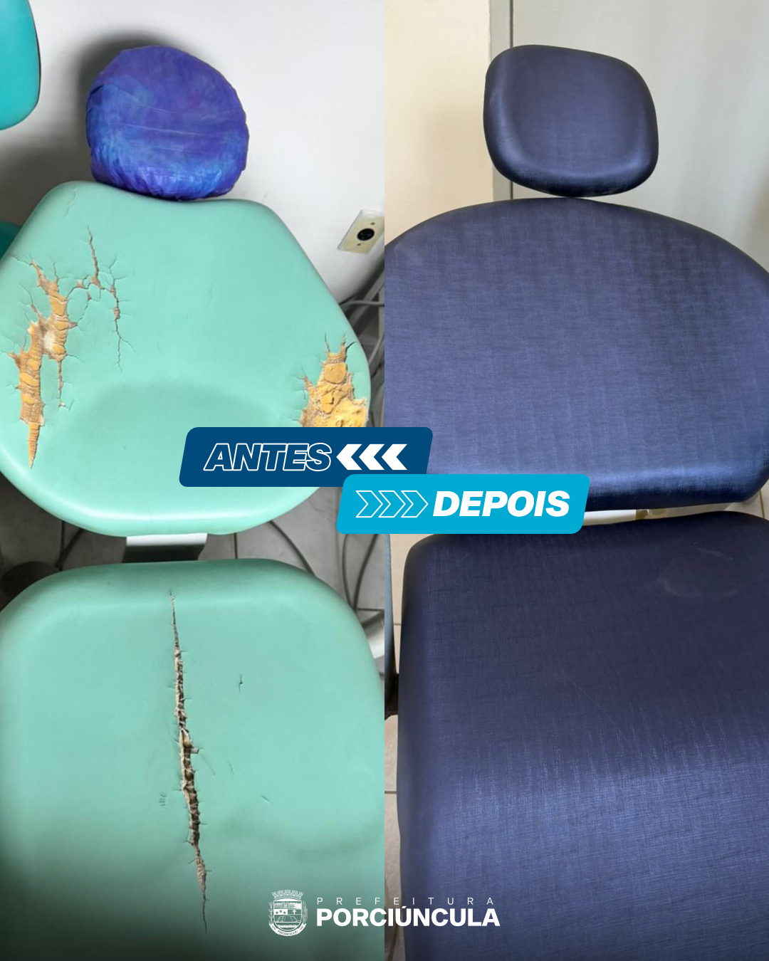 O registro de imagens do antes e depois evidencia a transformação realizada pela administração atual, que continua avançando com as melhorias na saúde bucal do município.