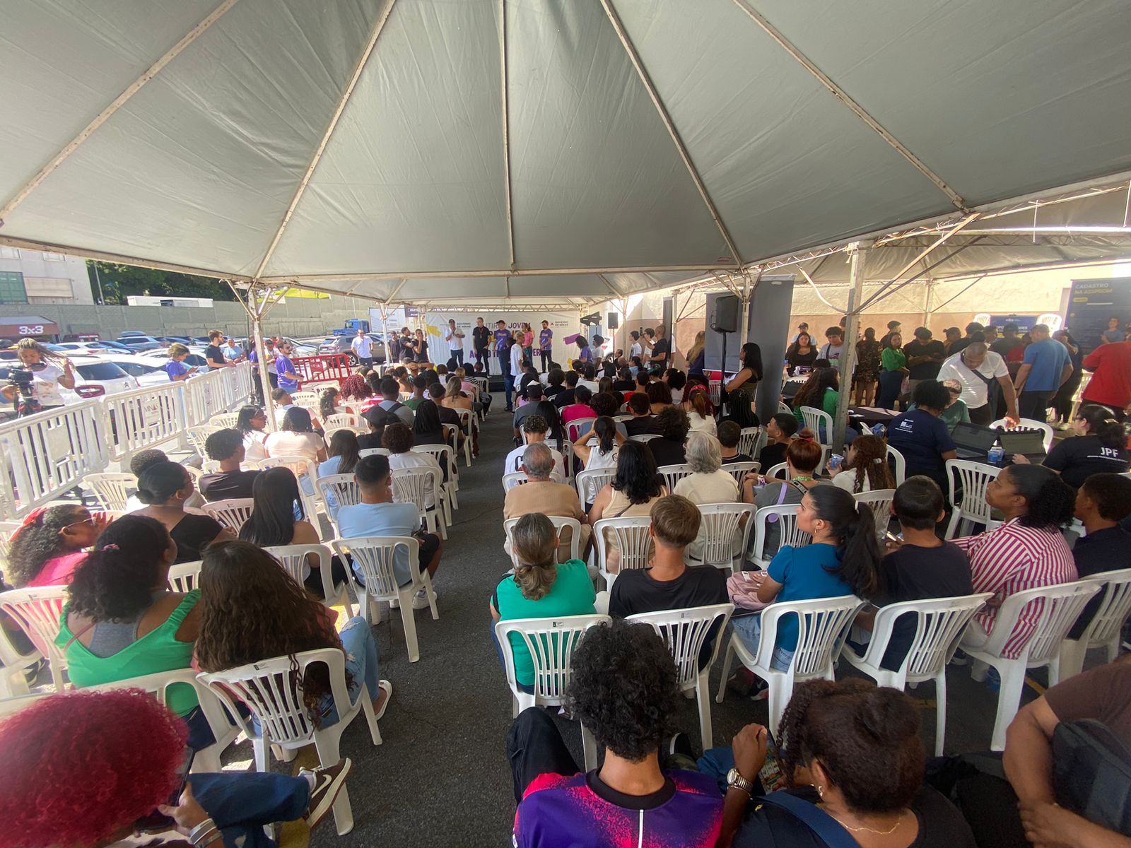 A ação, realizada pela Secretaria de Estado de Desenvolvimento Social (Sedese), reuniu adolescentes e jovens, com idades entre 14 e 24 anos, no estacionamento do Minas Shopping, na região Nordeste da capital, em busca da primeira oportunidade no mercado de trabalho.