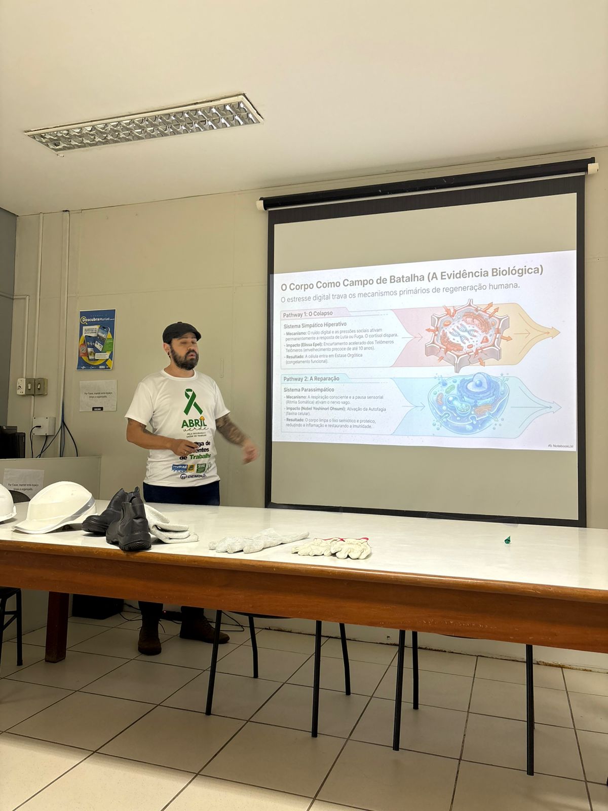 Encerrando a programação, a palestra sobre segurança no trânsito, ministrada pelo Sargento Pinheiro, da Polícia Militar de Minas Gerais, chama a atenção para os riscos no deslocamento entre casa e trabalho, reforçando a necessidade de atitudes responsáveis também fora do ambiente profissional.