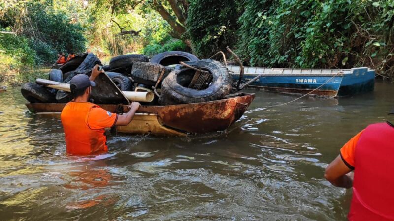 Força-tarefa remove resíduos do Rio Carangola e reforça prevenção ambiental