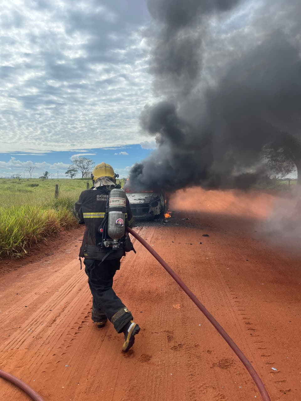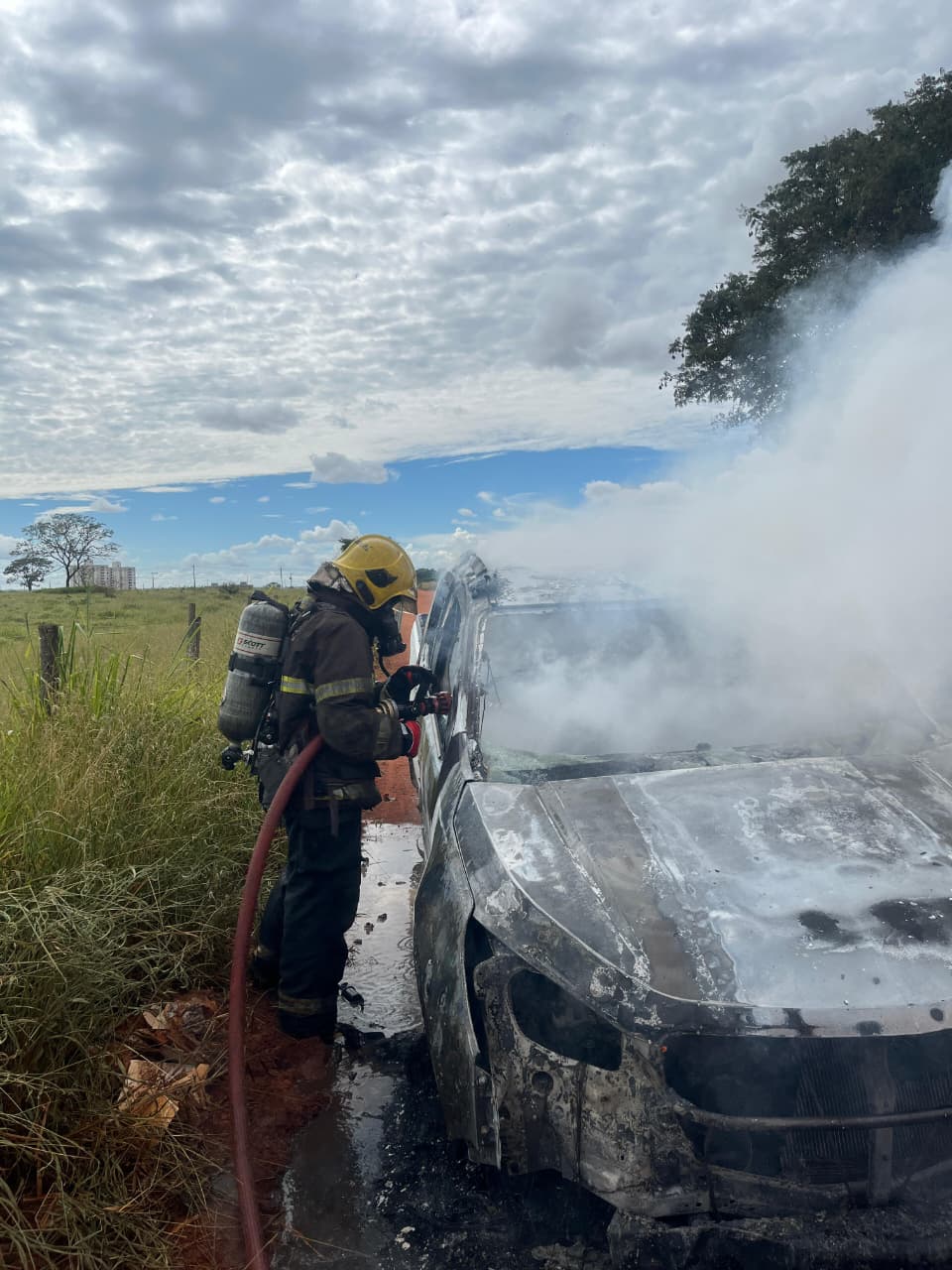O Corpo de Bombeiros Militar de Minas Gerais foi acionado para atendimento a uma ocorrência de incêndio em veículo em via rural, nas proximidades do bairro Fruta do Conde, em Uberlândia.