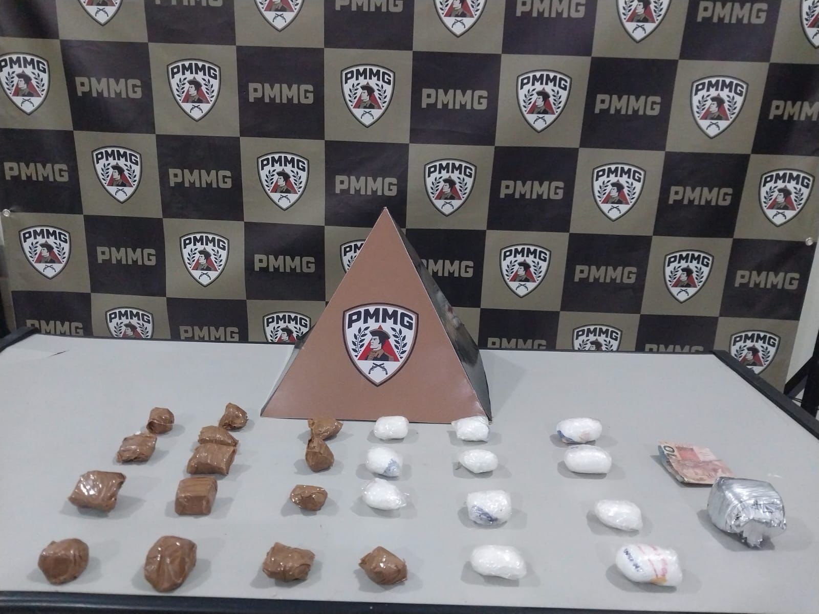 As equipes foram até o local indicado, na Rua Farmacêutico Sebastião Bruno, e fizeram buscas. Durante a ação, encontraram 25 porções de uma substância parecida com pasta base de cocaína, uma pedra grande de crack e 12 reais em dinheiro.